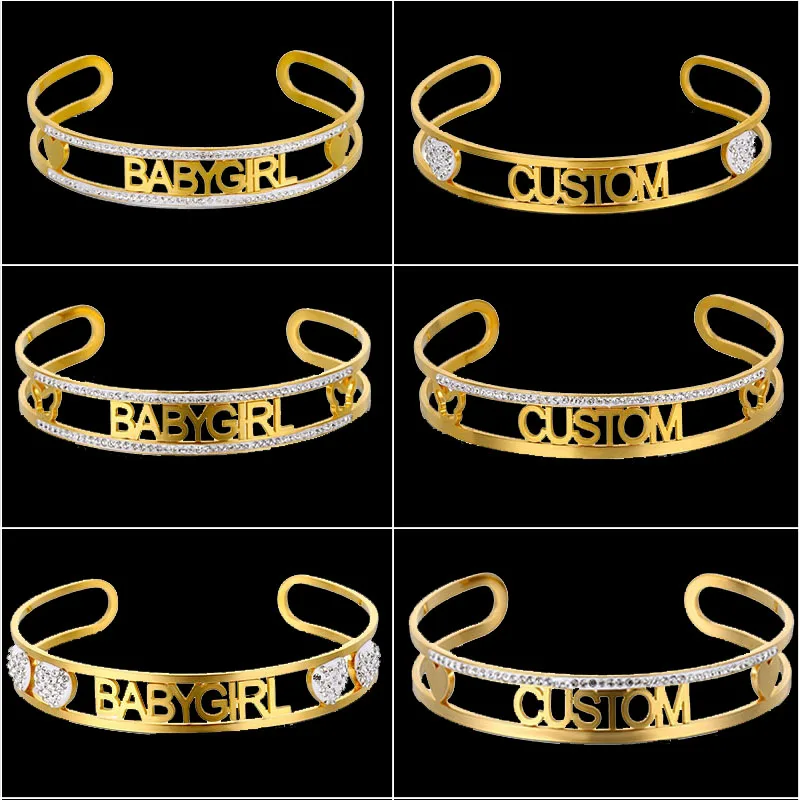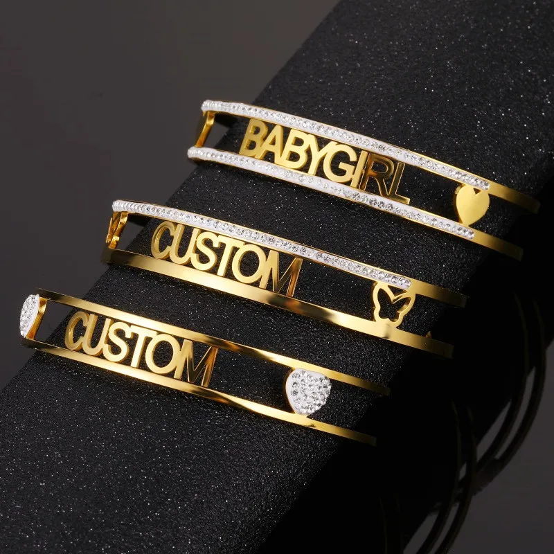 Женский Браслет-манжета из нержавеющей стали с индивидуальным именем
