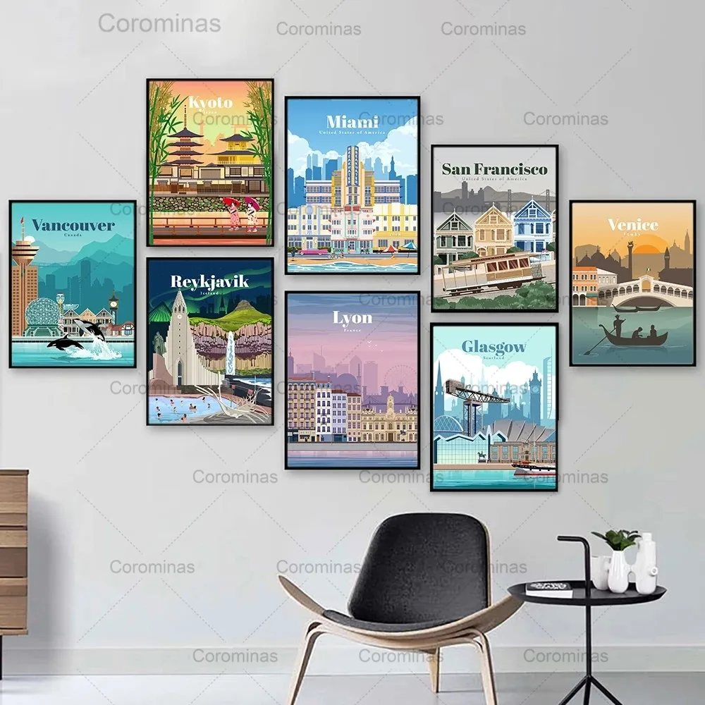 Знаменитый городской ретро постер для путешествий с изображением Венеции Сеула Киотского исландского Майами искусство на стену Декор для дома icon star icon star icon star icon star icon star
