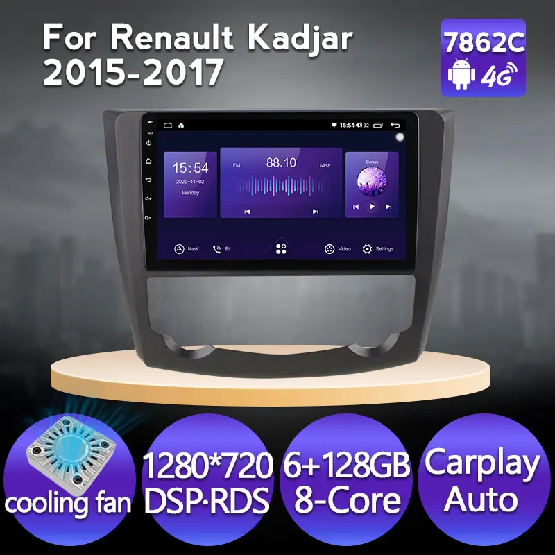 8-ядерный 6 + 128G Android 11 автомобильный Радио мультимедийный плеер GPS навигация для Renault Kadjar 2015 2016 2017 головное устройство Carplay Auto BT