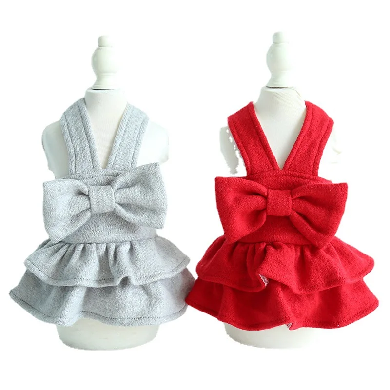 Платье кашемировое Двухслойное для собак, красно-серого цвета, роскошный дизайн, для осени и зимы, 2021