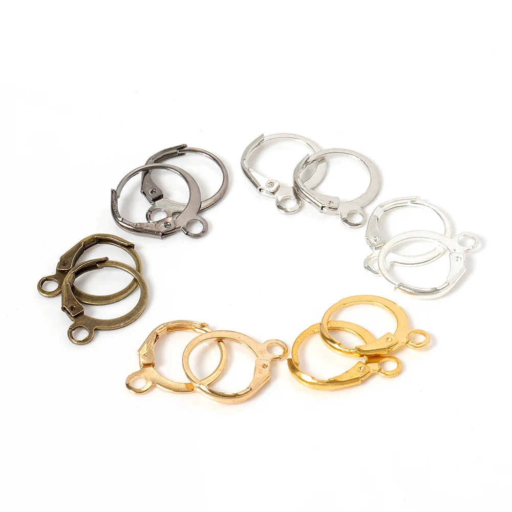 Круглые серьги с французским рычагом, простые круглые застежки для сережек, основа для бижутерии, принадлежности для поделок, 50 шт.лот, 13x15 мм