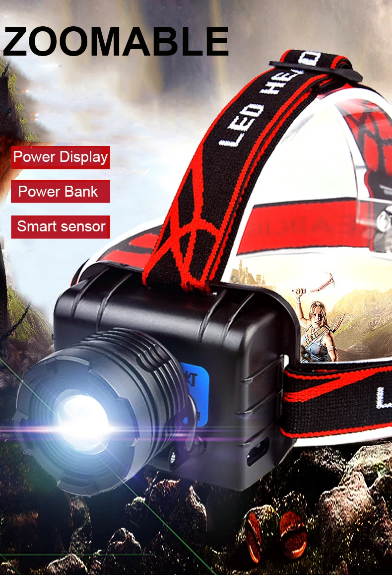 Налобный фонарь с датчиком движения, водонепроницаемый Головной фонарь с зарядкой от USB, для кемпинга