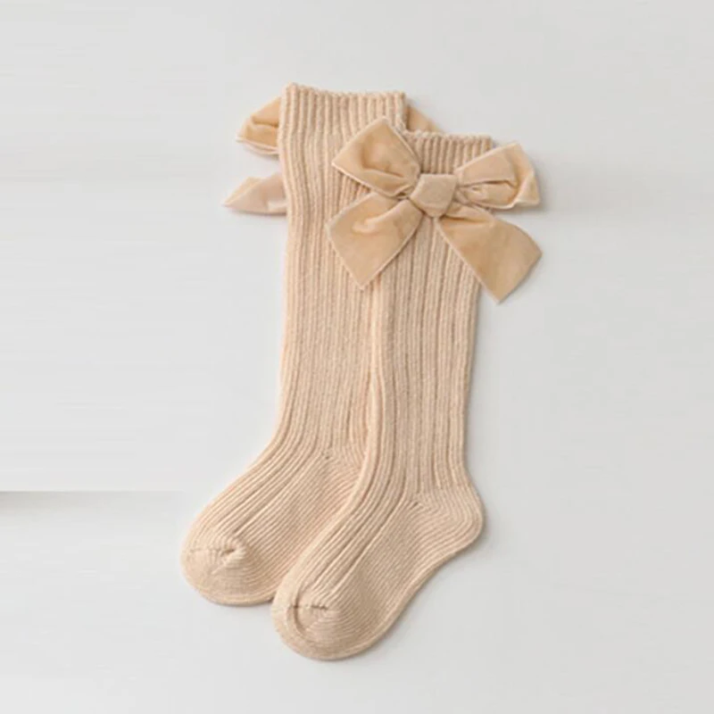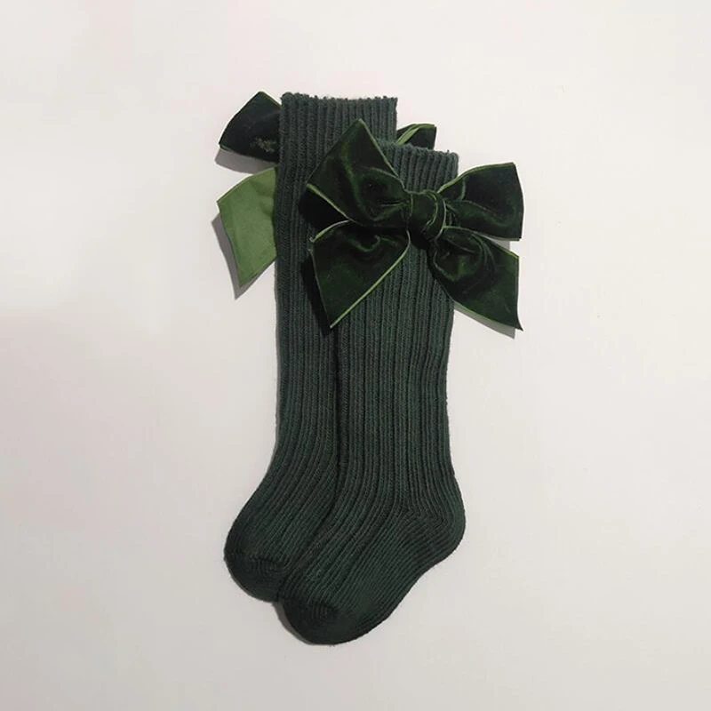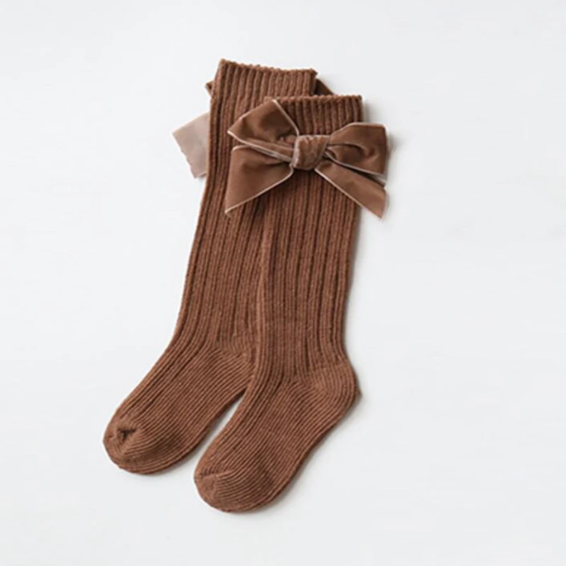Гольфы с большим бархатным бантом для новорожденных девочек, осенне...