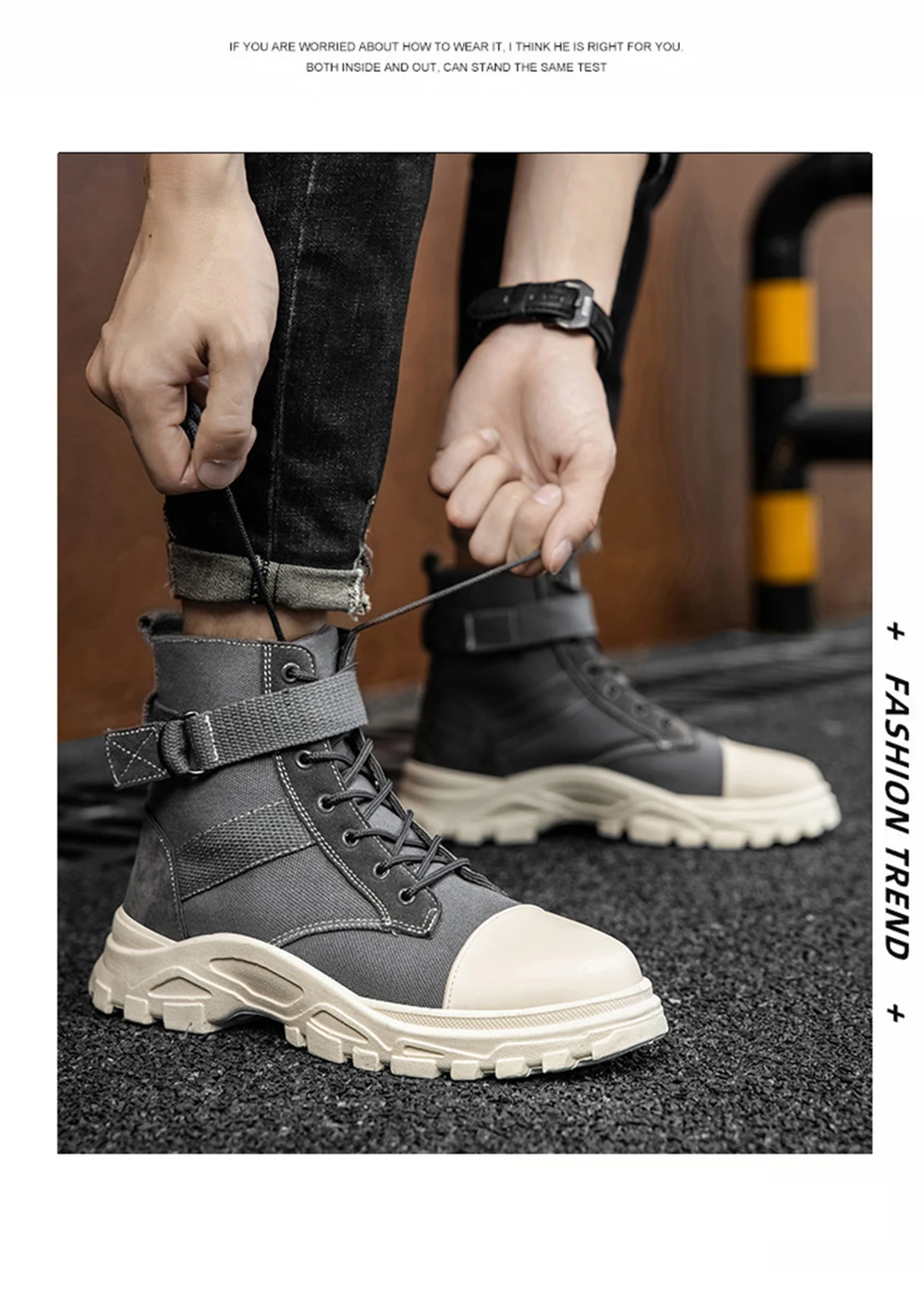 Модные мужские военные ботинки, уличная холщовая обувь с высоким бе...