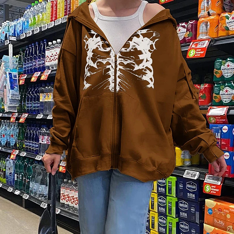 Свободные худи Y2K в стиле Харадзюку на молнии с принтом черепа, женские корейские пальто с капюшоном, однотонная одежда в стиле ретро, Женская толстовка для девочек