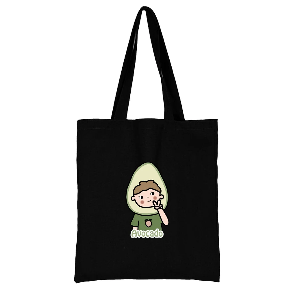 Милая серия эко-женских сумок для покупок с рисунком авокадо, сумка-шоппер с мультяшным рисунком, сумка на плечо, модная черная сумка с рисунком, Холщовая Сумка-тоут