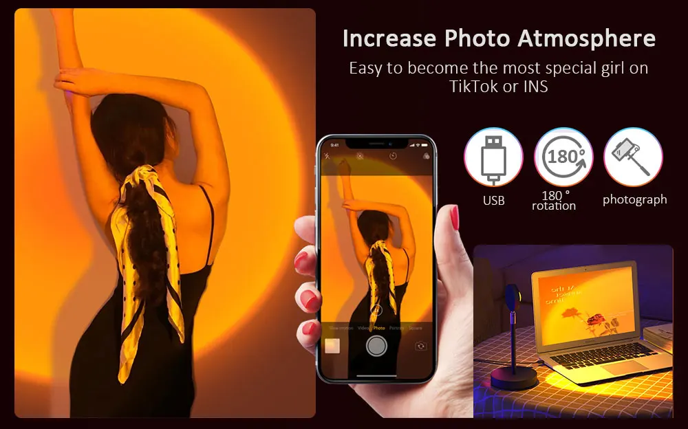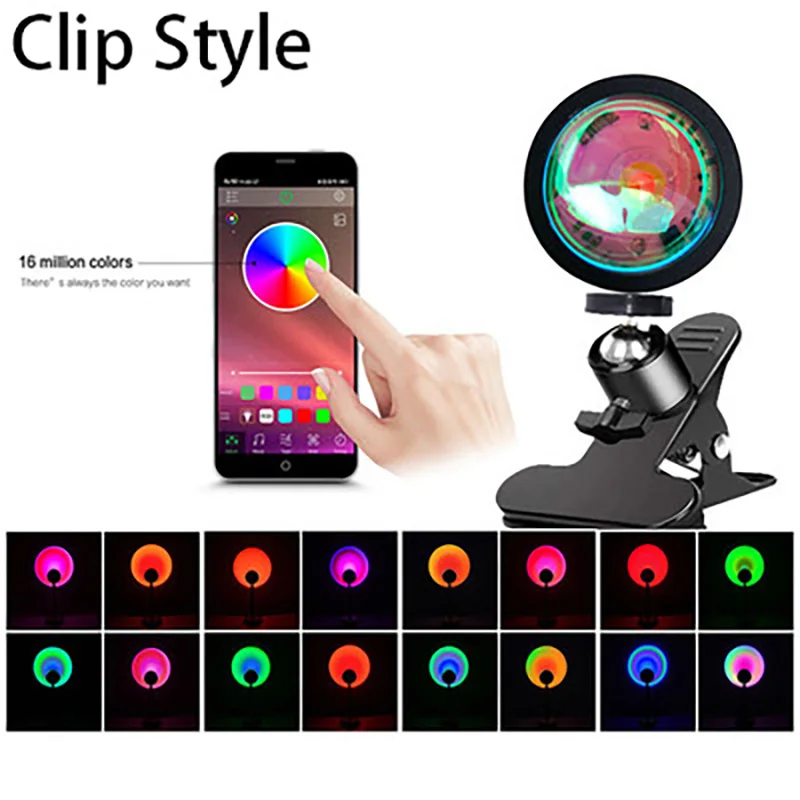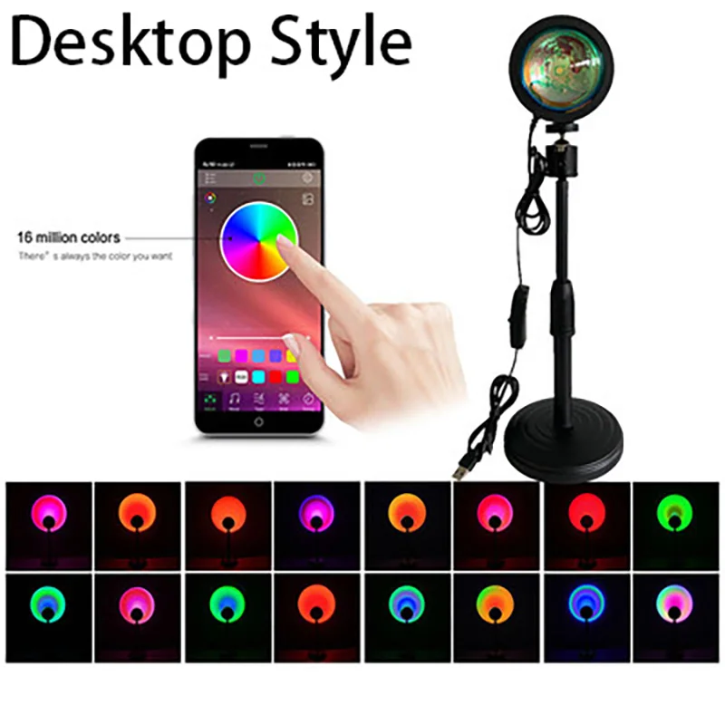Проекционная лампа RGB, с проекцией заката, мобильное приложение, беспроводной пульт дистанционного управления, цветной Солнечный свет, светодиодный светильник, вращающийся на 360 градусов, атмосфера, ночник s