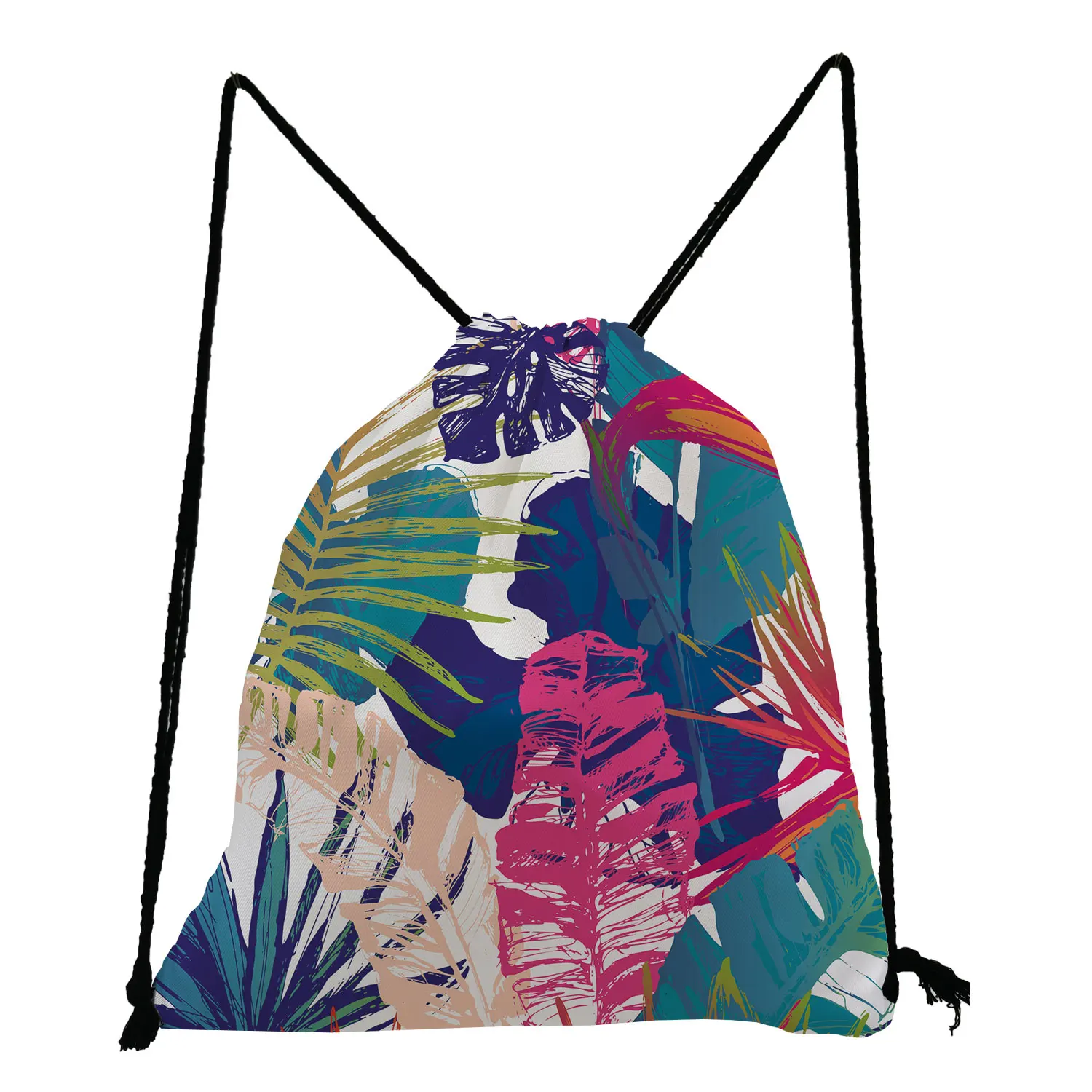 Модный рюкзак на шнурке с принтом растений, мини-детские школьные сумки, женская спортивная сумка для занятий спортом, сумка для плавания и путешествий, портативная эко-сумка