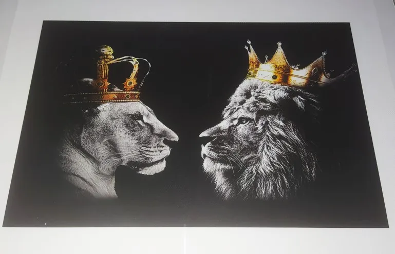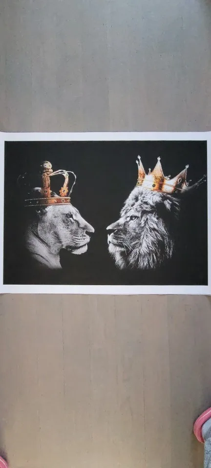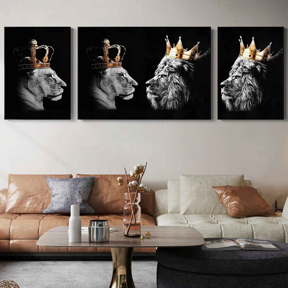 Настенный плакат на холсте с изображением Льва и львицы в короне, черно-белых животных