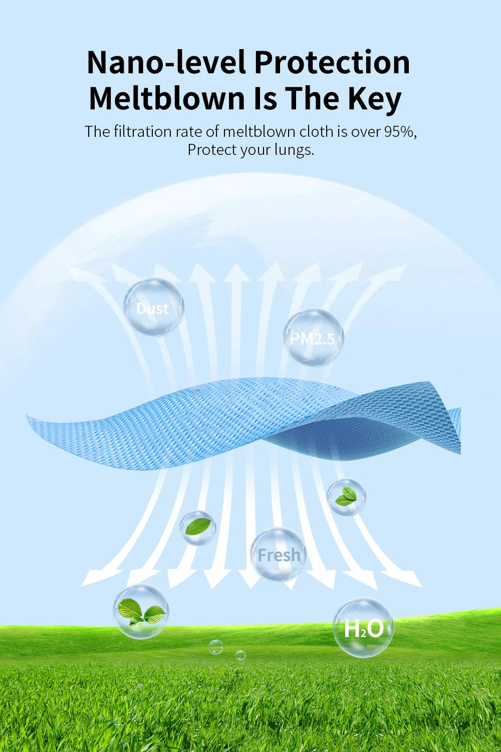 ①Comfortable в носке.②Хороший эффект фильтрации, особенно для очень мелких частиц и пыли.③ Подходит для различных форм лица.④ Высококачественный защитный эффект. Его защитный эффект такой же, как маска KN95 и Европейская маска FFP2.Applicable применяется в различных средах, где защитные маски необходимо носить в течение длительного времени, таких как фабрики, школы, компании, торговые центры, песчаные бури, строительные площадки, больницы, парки и т. Д.