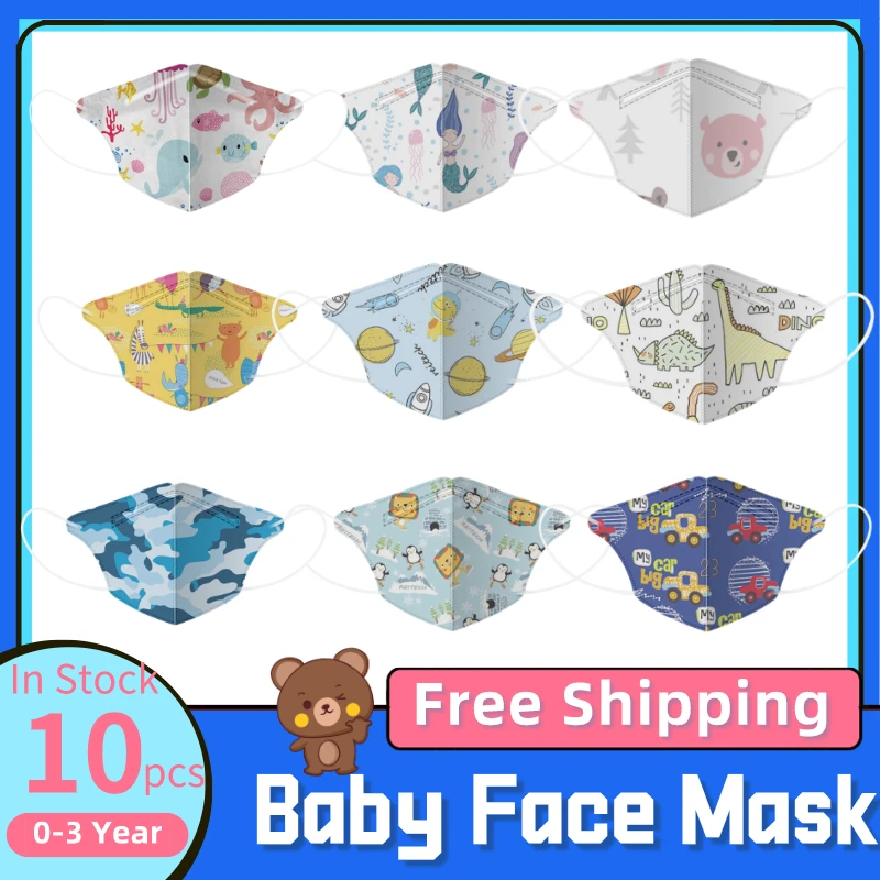10 шт., 4 слоя мультяшной 3d-маски ffp2mask для детей 0-3 лет
