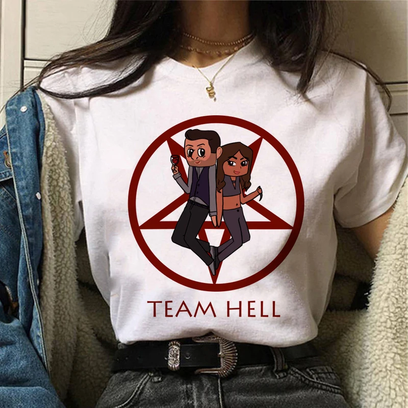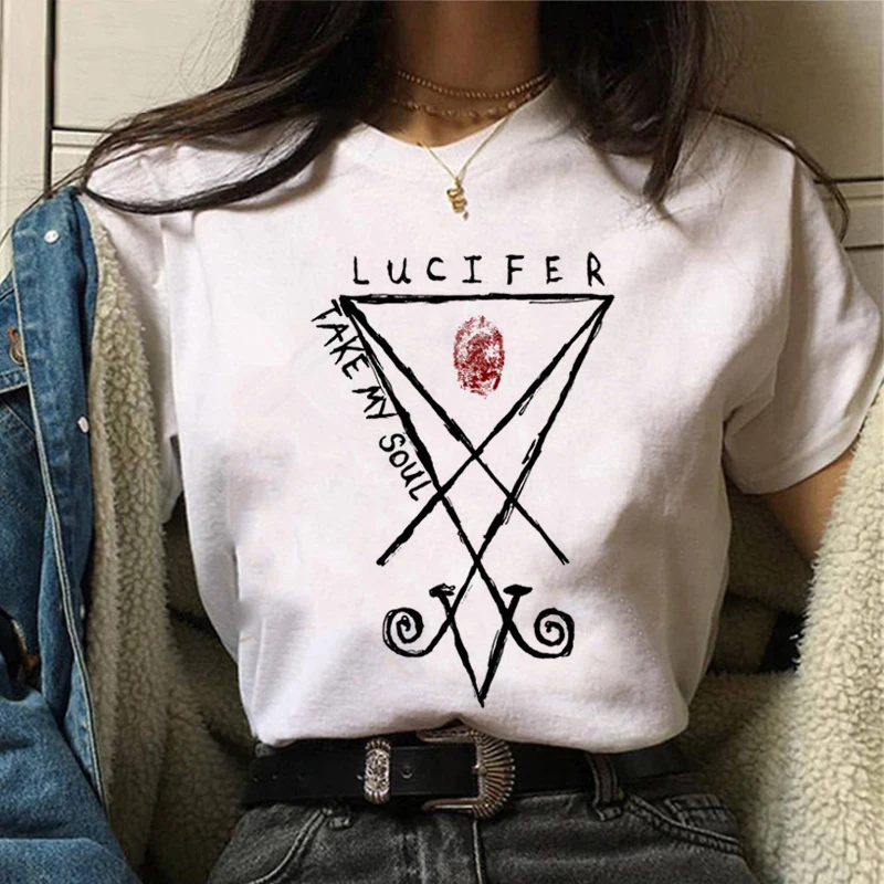 Футболка женская с принтом дьявола Люцифера, модный топ с коротким рукавом, Повседневная рубашка в стиле Харадзюку, на лето