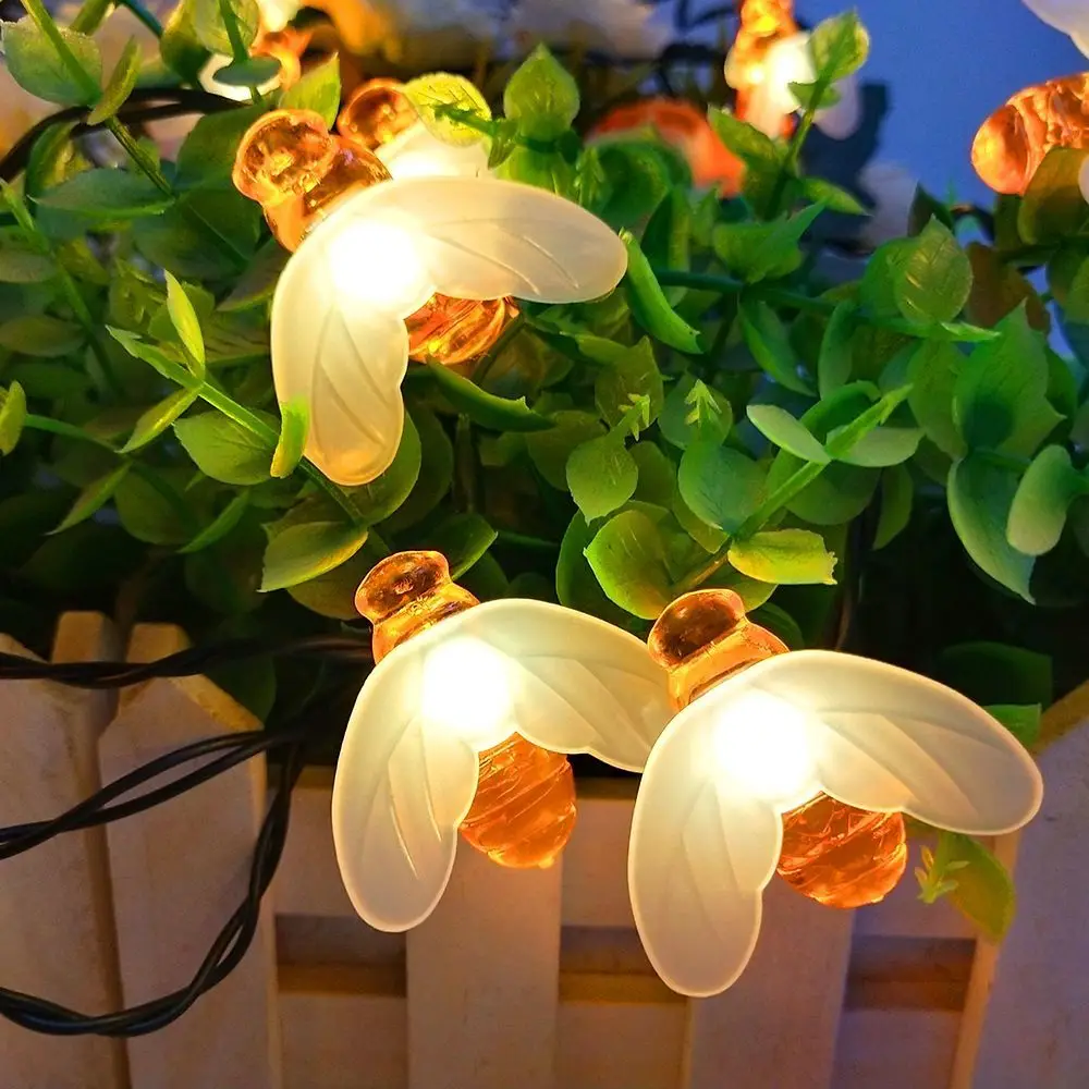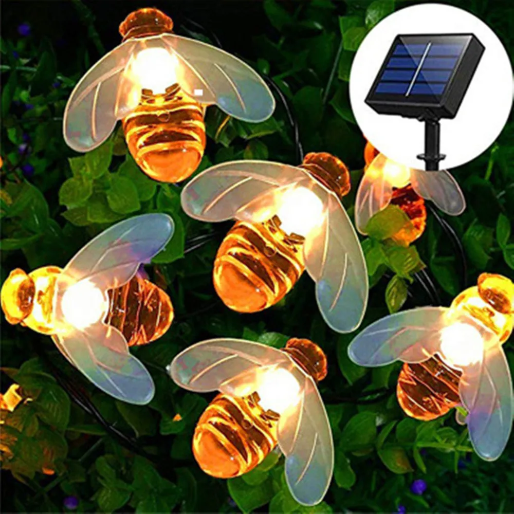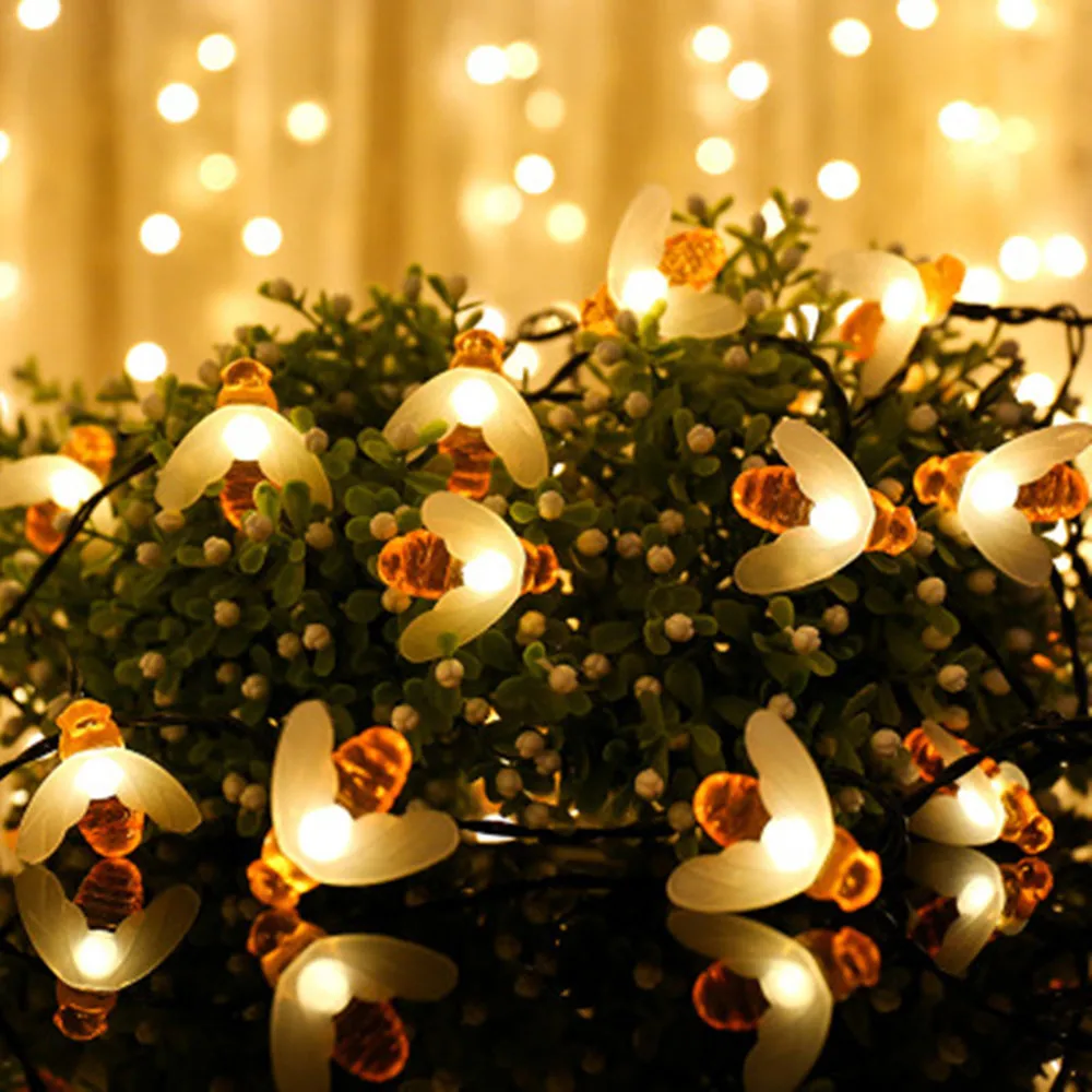 Милый светодиодный светильник на солнечной батарее, 20led 50led наружный садовый забор, патио, Рождественская гирлянда, светильник, Медовое украшение в виде пчелы