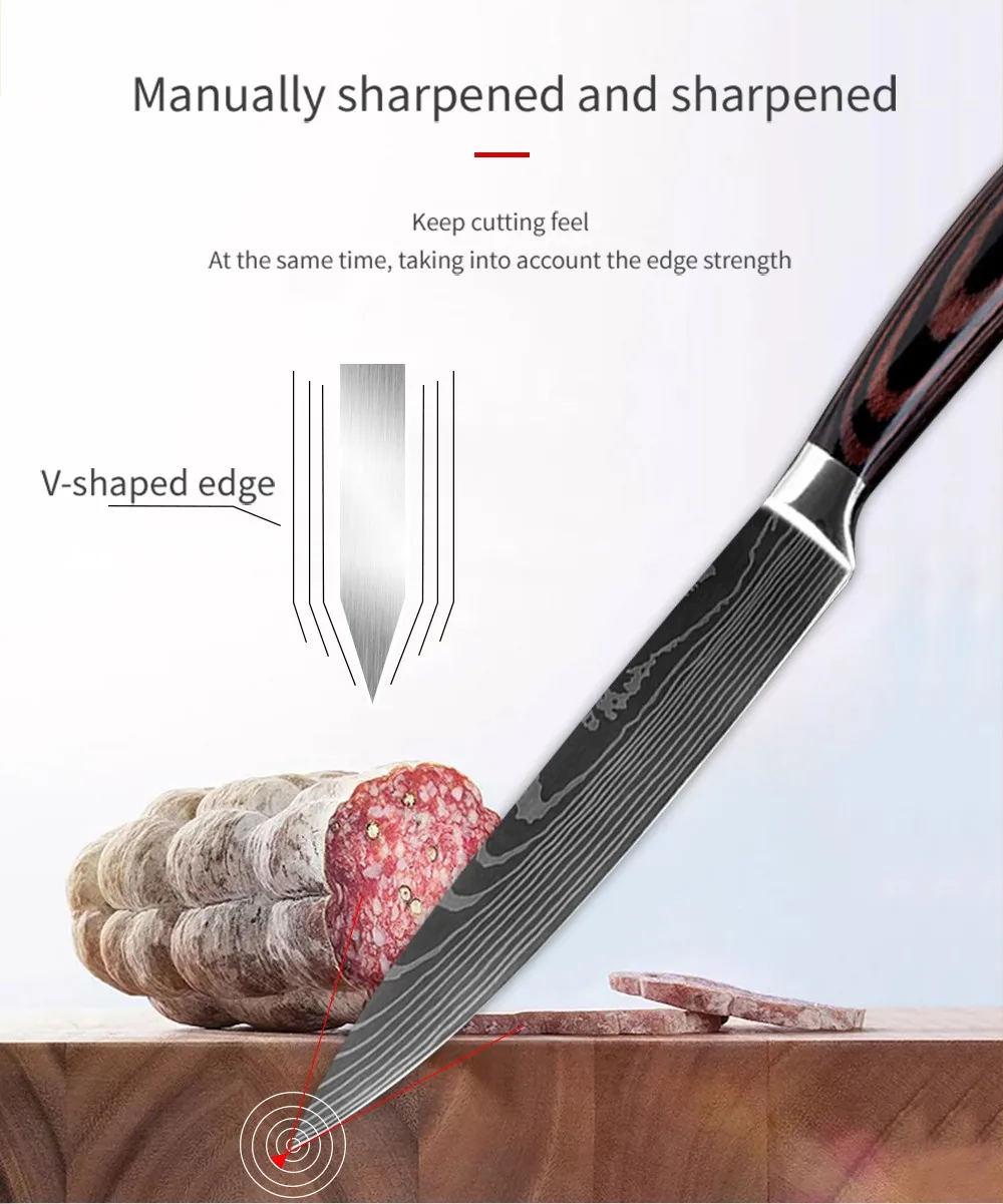 Характеристики продукта:Изготовлен из высококачественной нержавеющей стали, не подвержен ржавчине и коррозииСверхострое лезвие помогает легко резать едуПоставляется с чехлом для лезвия ножа, защищает ваш нож и защищает ваших детейЭргономичный дизайн деревянной ручки pakka для максимального контроляВес и размер этого поварского ножа сбалансированы, деревянная ручка Pakka делает этот кухонный нож более стильным и неподвластным времени.Характеристики:Размер ножа: 7 дюймовУзор: Лазерные Дамасские жилыПоставляется с футляром: ДаМатериал лезвия: нержавеющая сталь 7Cr1 7Материал ручки: дерево паккаТолщина лезвия: 2,0 ммОбратите внимание, что на рисунках ниже показано, что цвет лезвия темно-серый, на самом деле изделия светильник-серого цвета.
