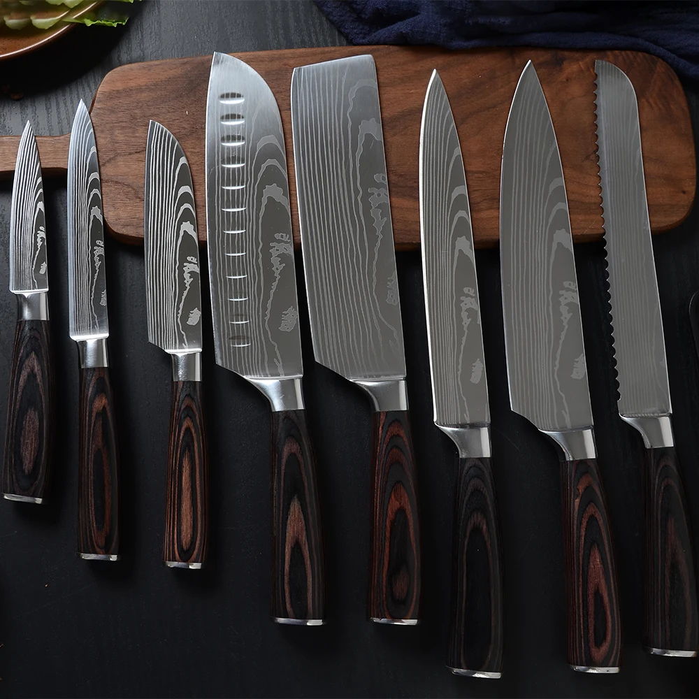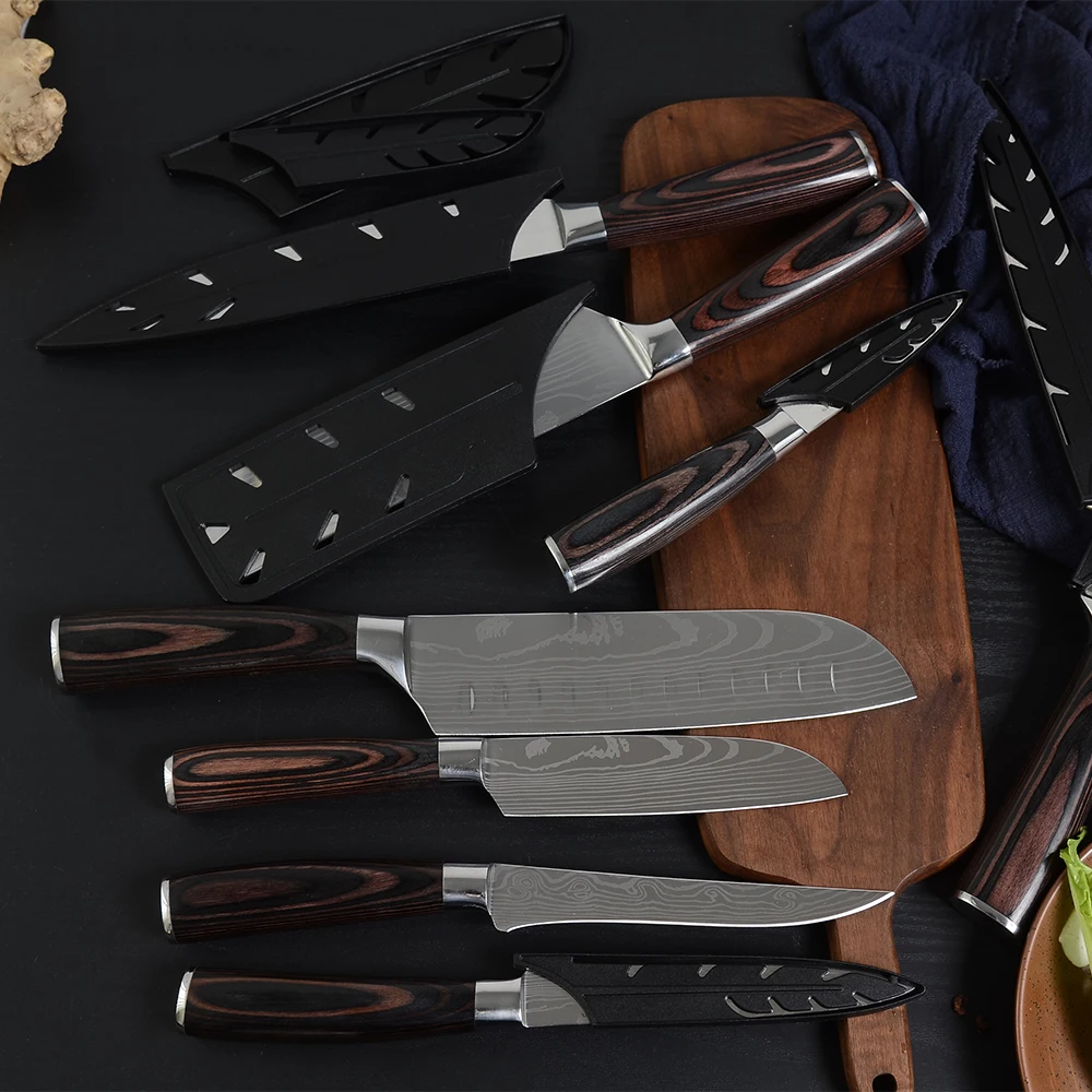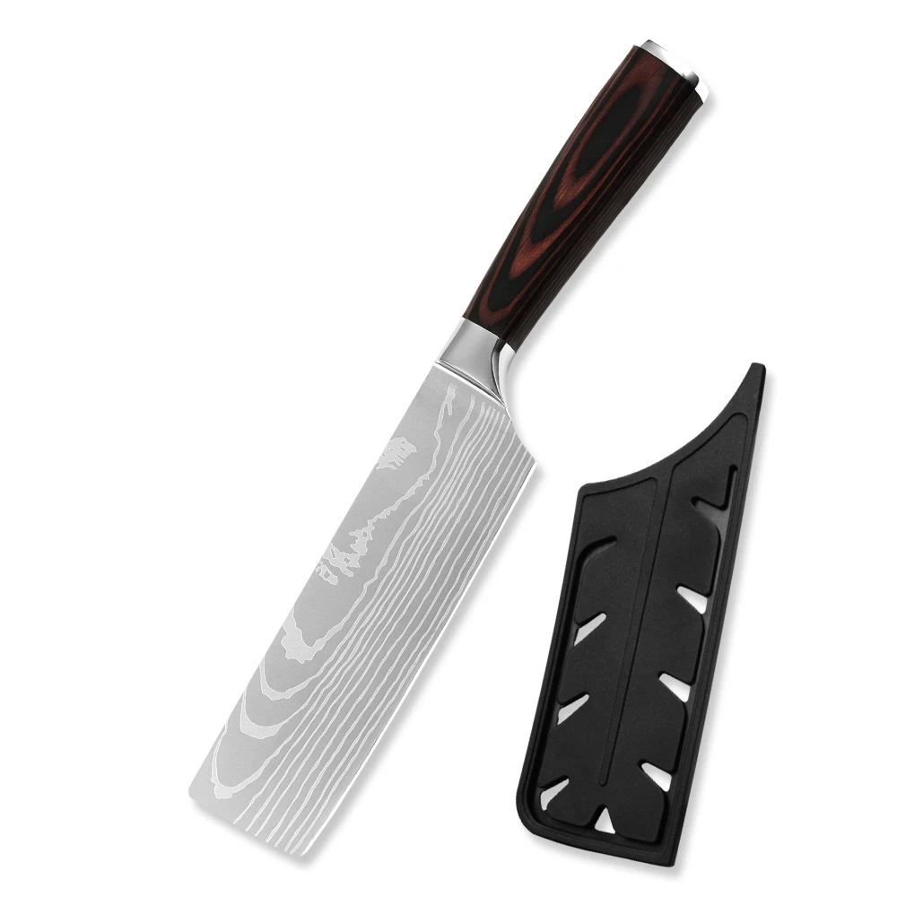 Ножи накири XYJ, 7 дюймов, из нержавеющей стали, с лазерным узором дамасской стали
