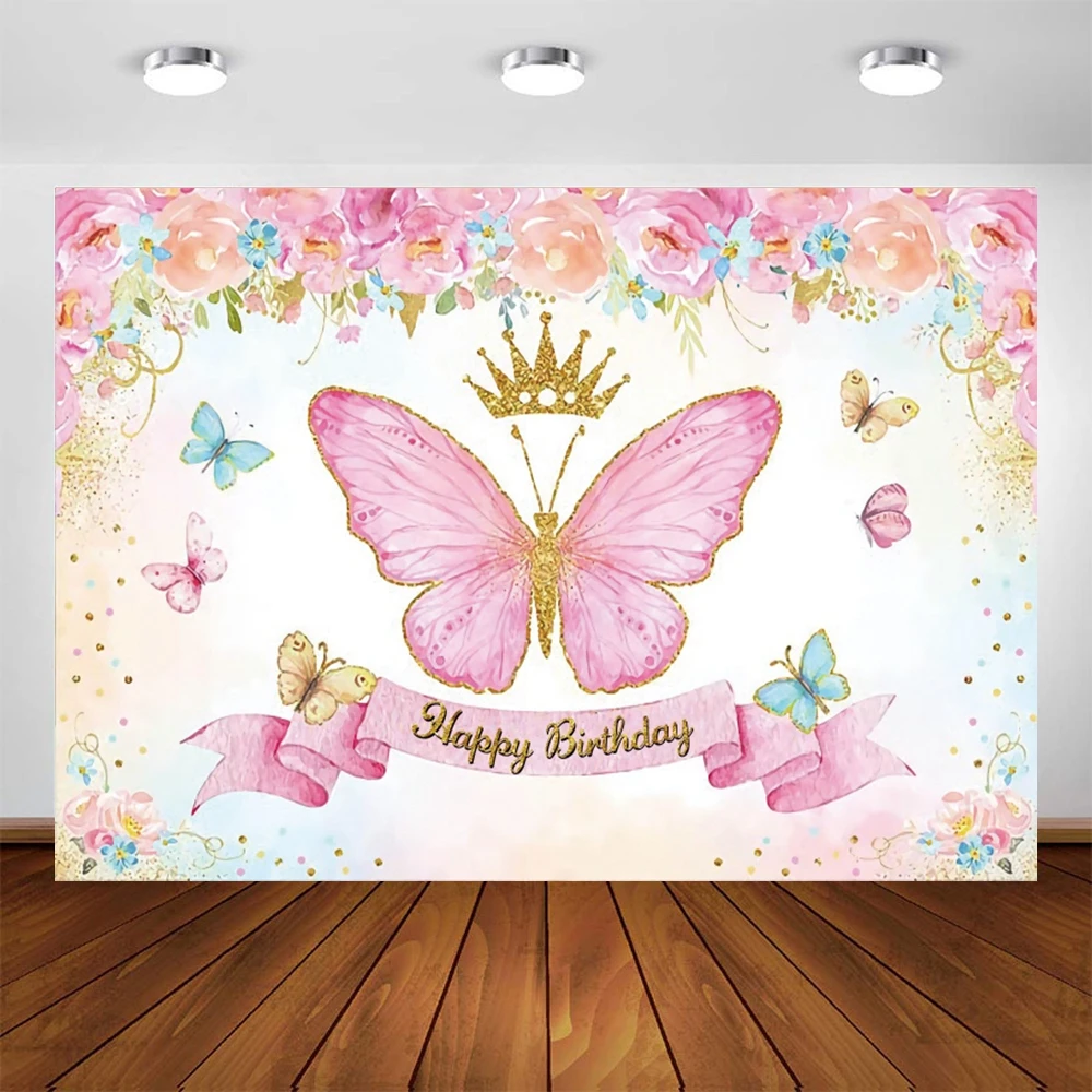 Бабочка цветок принцесса девочка розовый фон для фотосъемки Новорожденный ребенок душ День Рождения Вечеринка фон для фотостудии