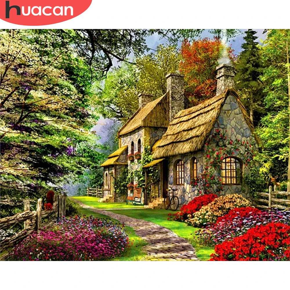HUACAN DIY рамка краска по номеру дом пейзаж для взрослых картина по номерам дерево Акриловая Краска на холсте украшение дома