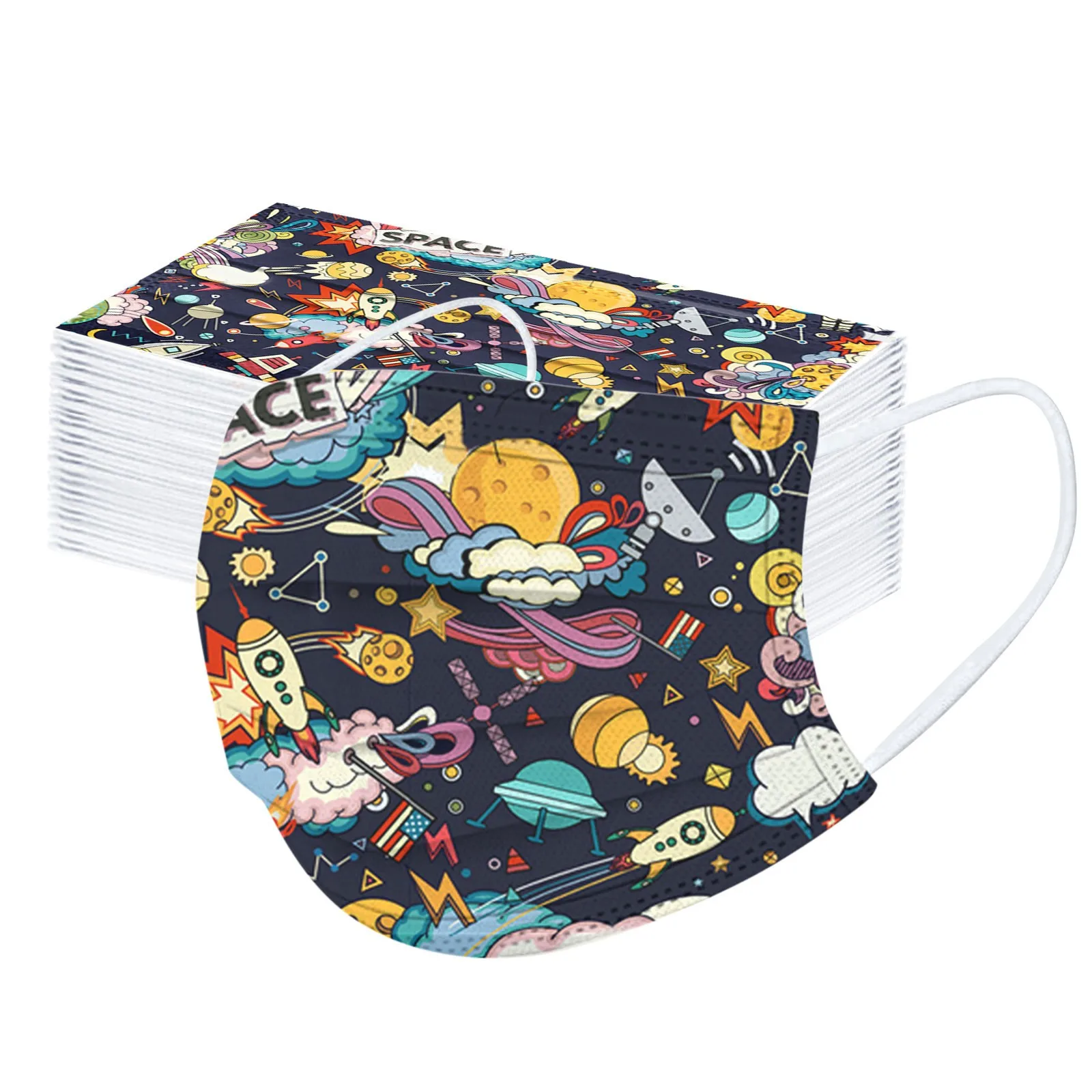 50 шт детский трехслойный защитный пыленепроницаемый мультяшный принт одноразовая маска