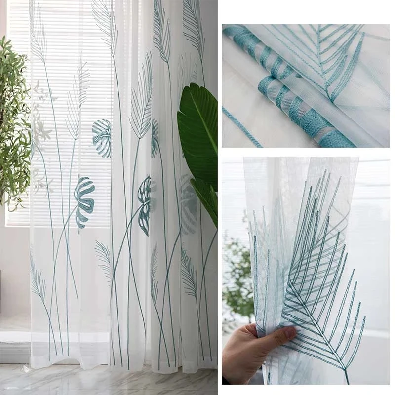 Шторы LISM с вышивкой листьев, прозрачные тюлевые занавески из вуал...
