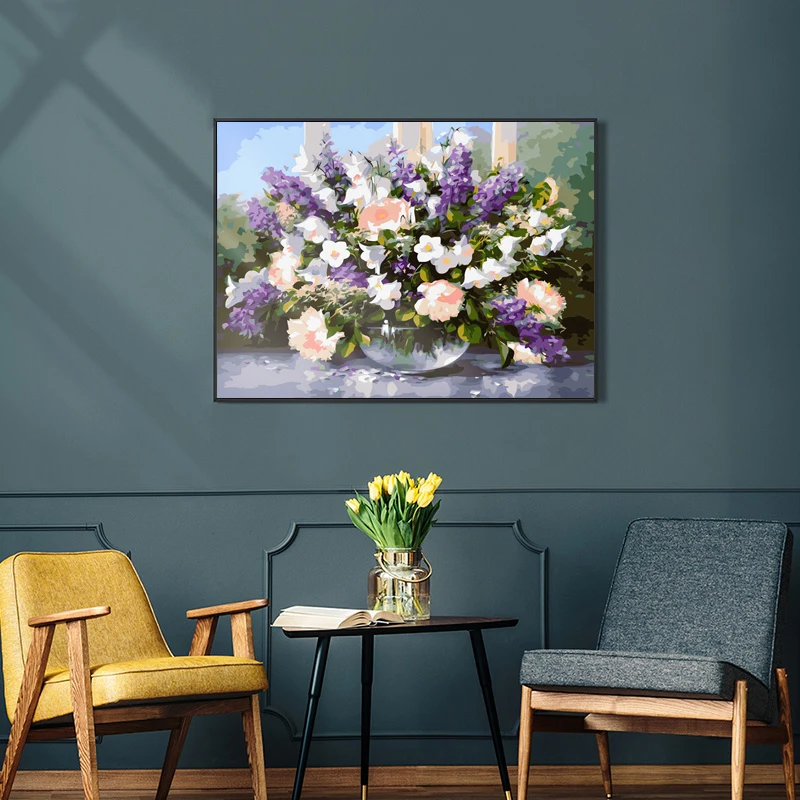 Раскраска по номерам "сделай сам", цветы, без рамы, картина по номе...