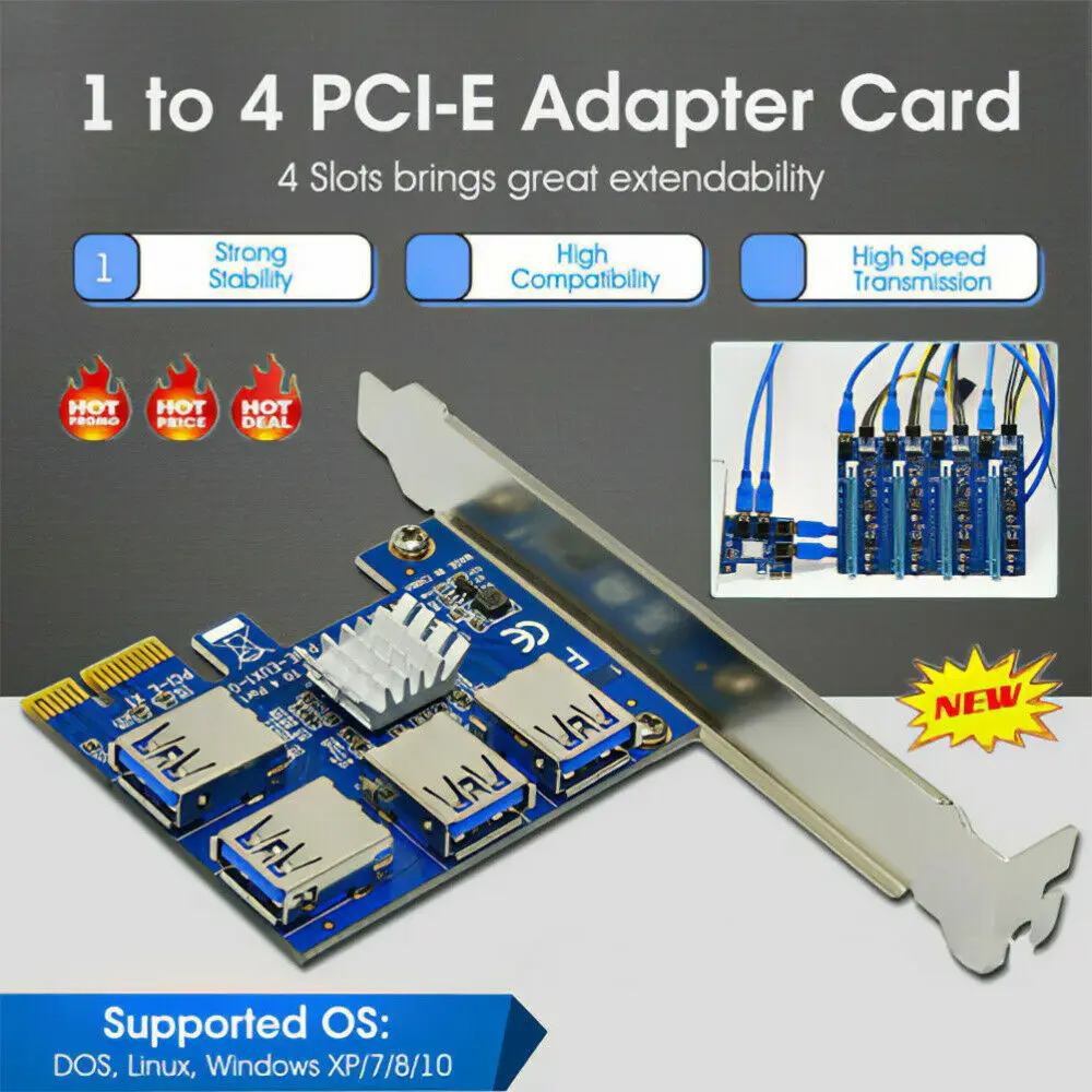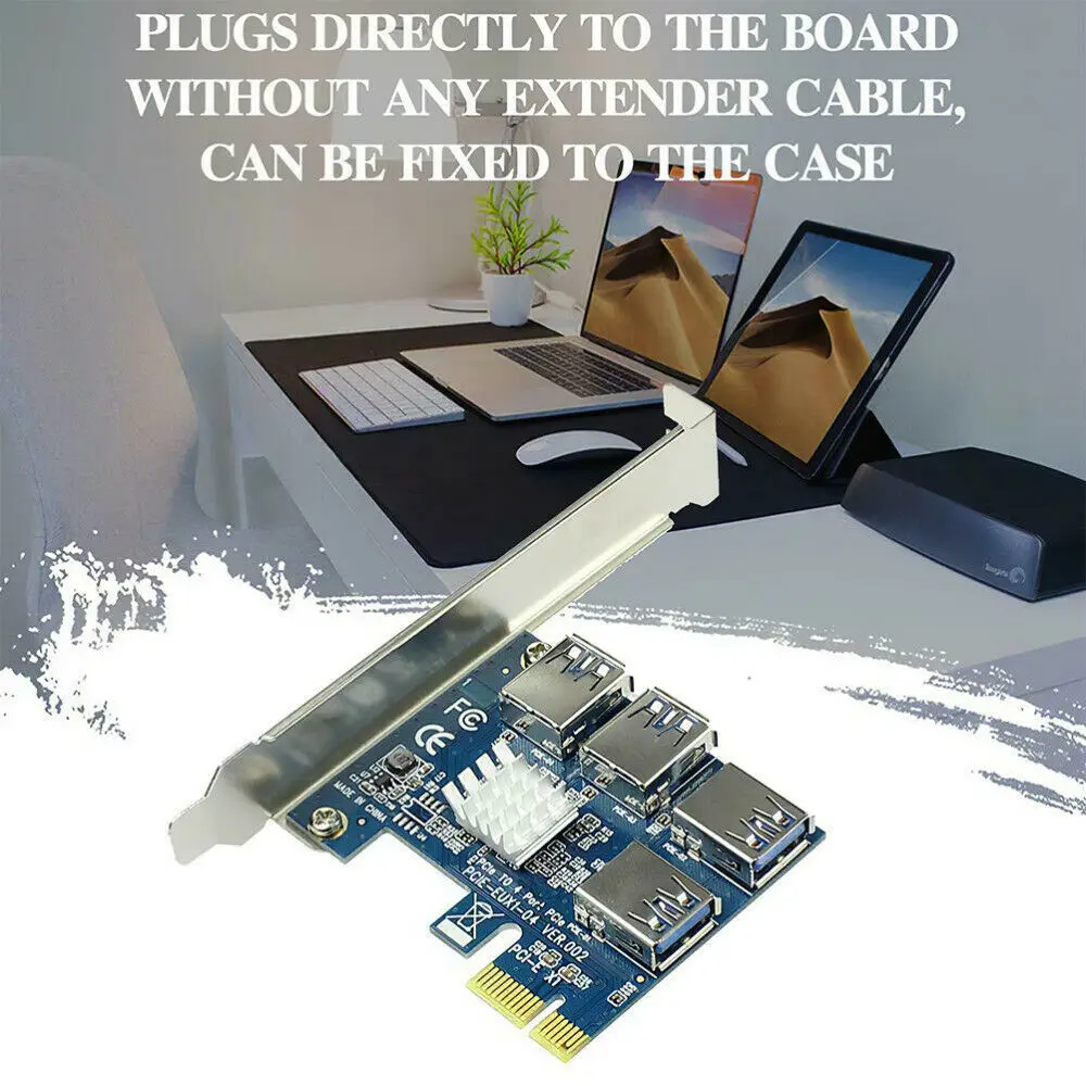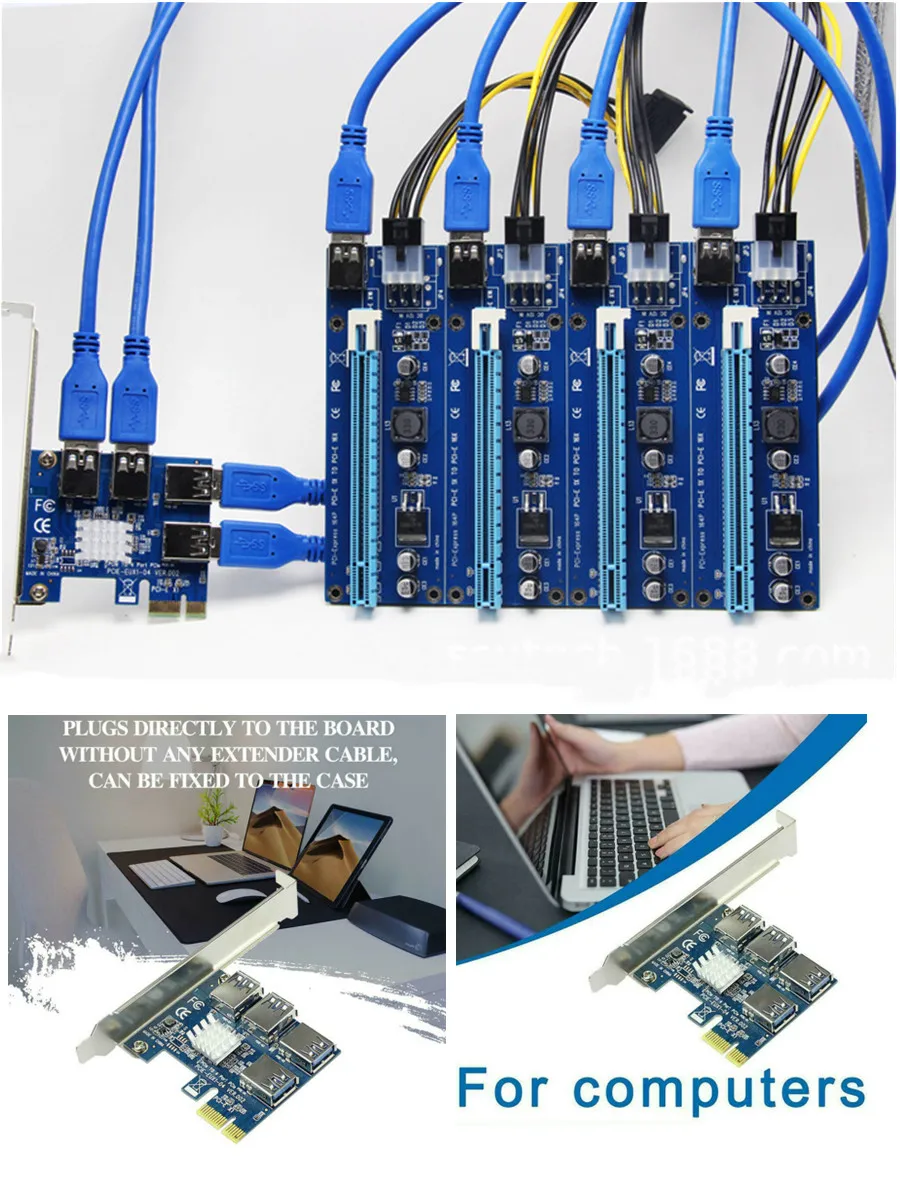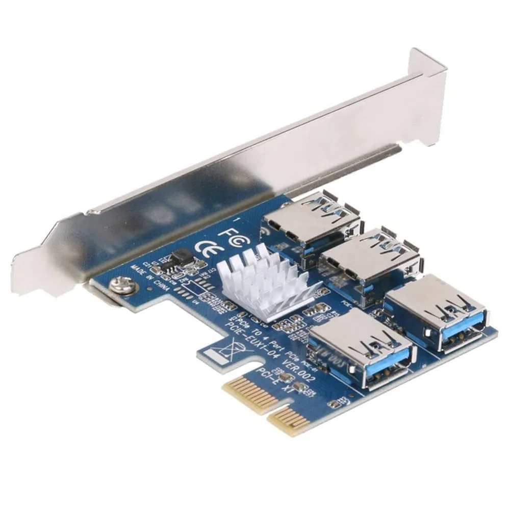 PCI-E-PCI-E адаптер 1 поворот 4 PCI-Express слот 1x до 16x USB 3,0 карта расширения для майнинга PCIe преобразователь для майнинга BTC