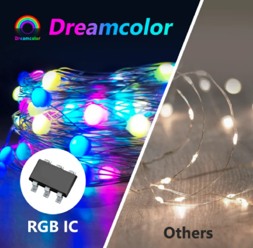 RGB Радужный эффект:Умные сказочные гирлянды с уникальным встроенным микросхемой IC, светодиодные мерцающие огни могут одновременно отображать разные цвета, как радуга. Мгновенно преобразует ваше пространство с ярким освещением. Улучшенная яркость 100 светодиодов и 16 миллионов цветов делают любой декор идеальным. Идеально подходит для вечерние, день рождения, свадьбу, День благодарения, Рождество и т. д.