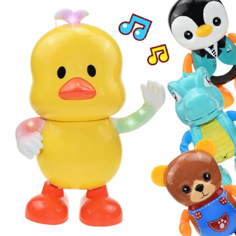 Электрический танцующий маленький желтый утка робот Пингвин динозавр светомузыка танцующий Детский Электронный Питомец игрушка кукольный дом игрушки
