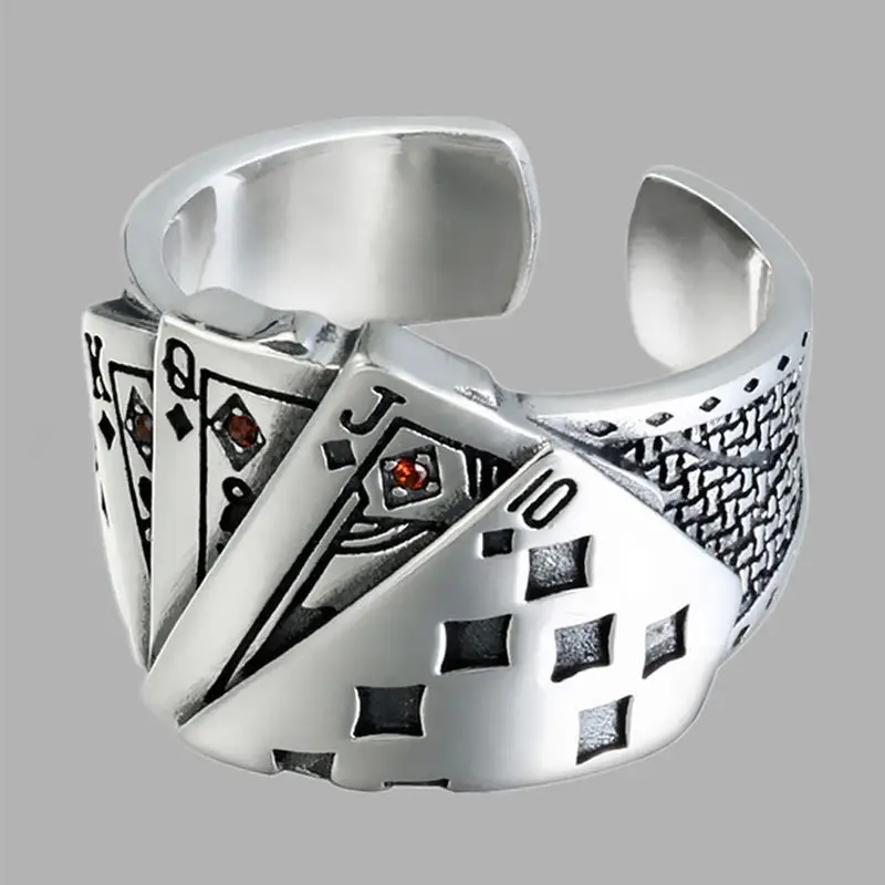 Волшебная игральная карта крупный кубический цирконий Байкерская фотография винтажное гравированное регулируемое кольцо хип-хоп тибетское ювелирное изделие