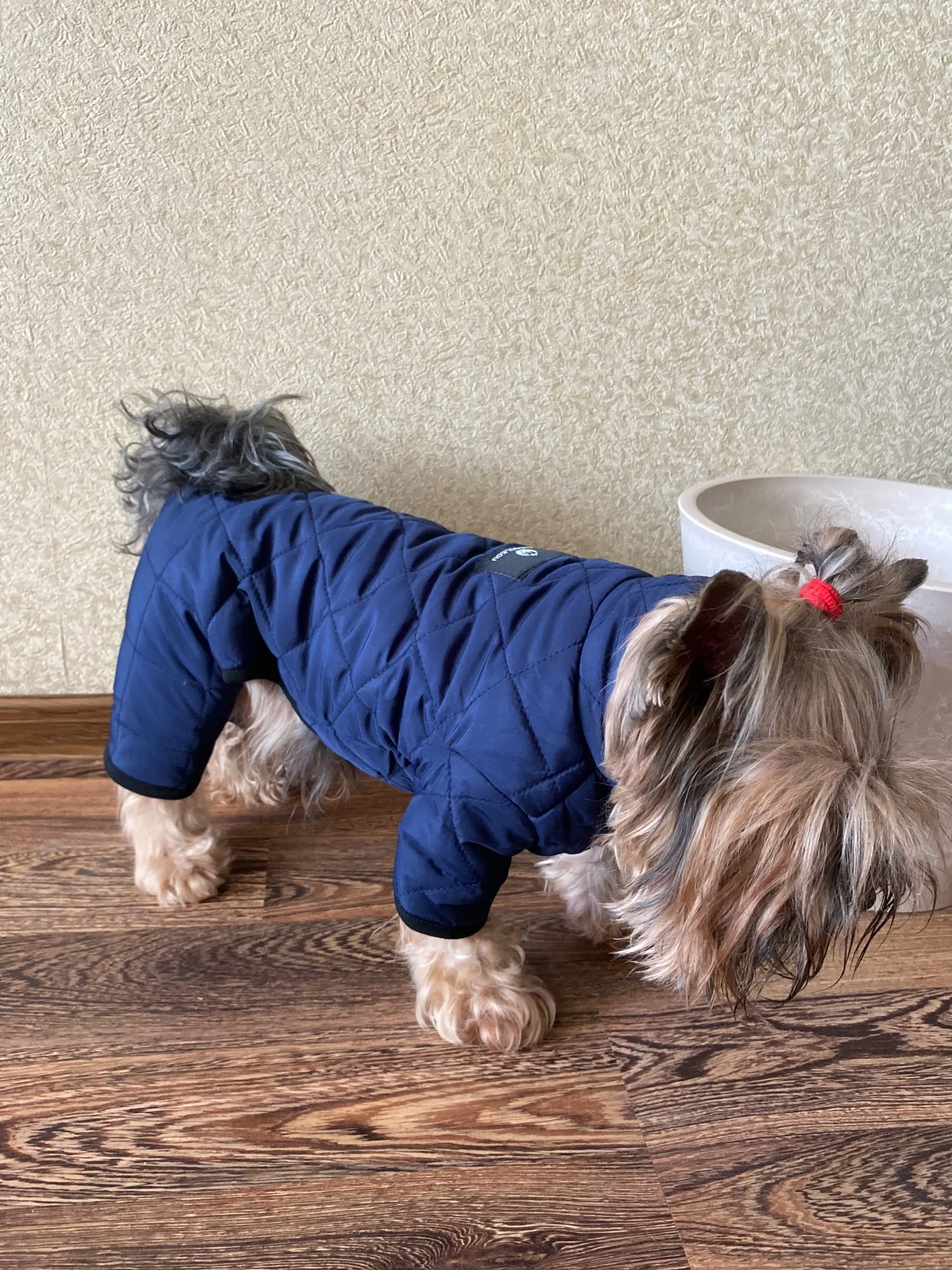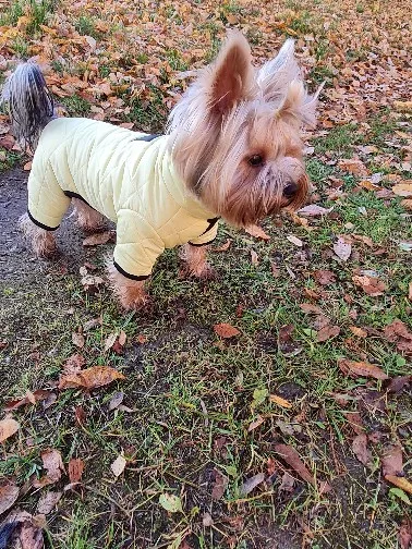 Комбез пришёл с опозданием на 10 дней. Ожидала более тонкий, но он тёплый. Ткань сверху не водостойкая, на дожде будет промокать. Есть небольшой дефект, в строчке оборваны нитки, может дальше распускаться при стирке. Размер не для йорка. Длинный, но узковат. На 5.600 йорка почти подошёл размер XL. Цвет комбеза очень красивый. Продавец был на связи. Рекомендую.