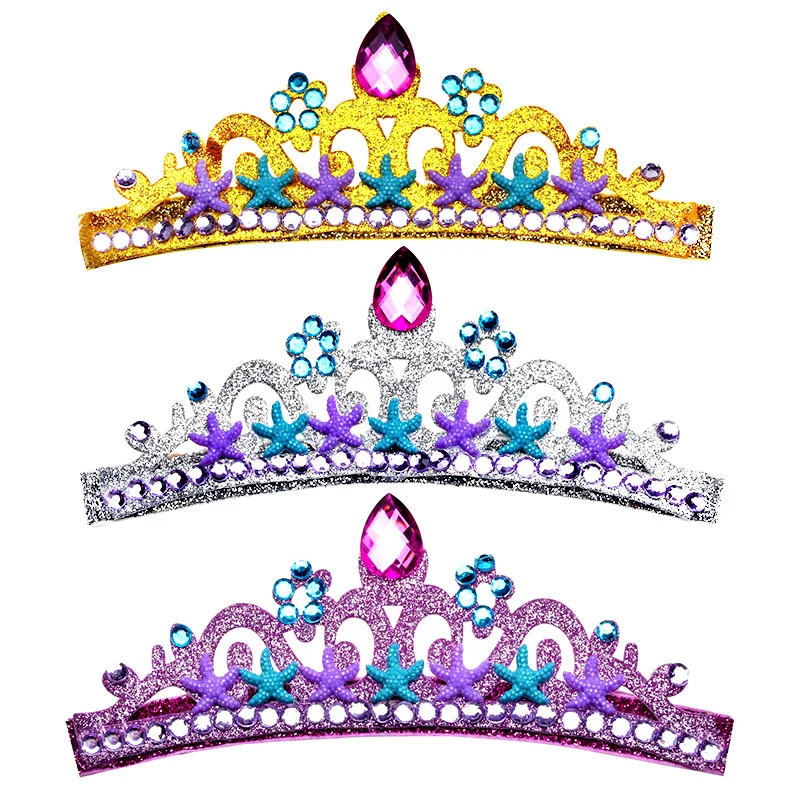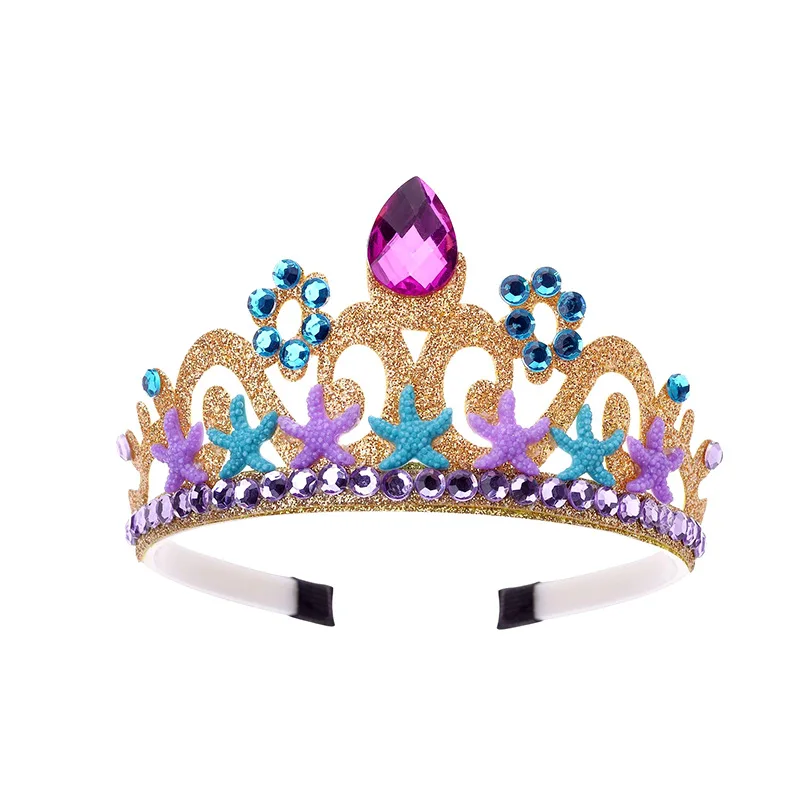 Повязка на голову детская с короной на день рождения, морской звездой, русалочкой, аксессуар для волос