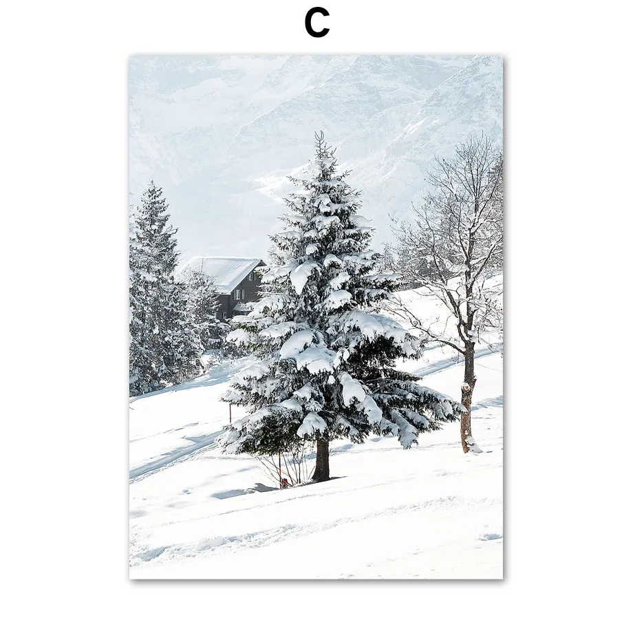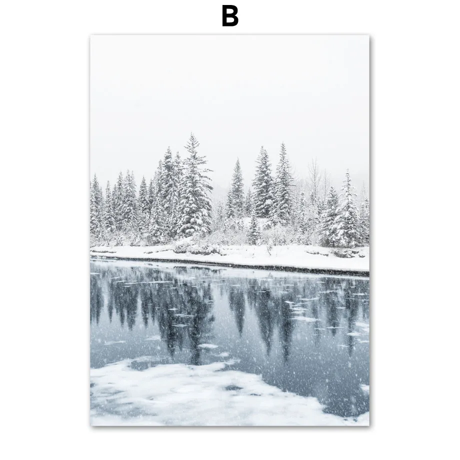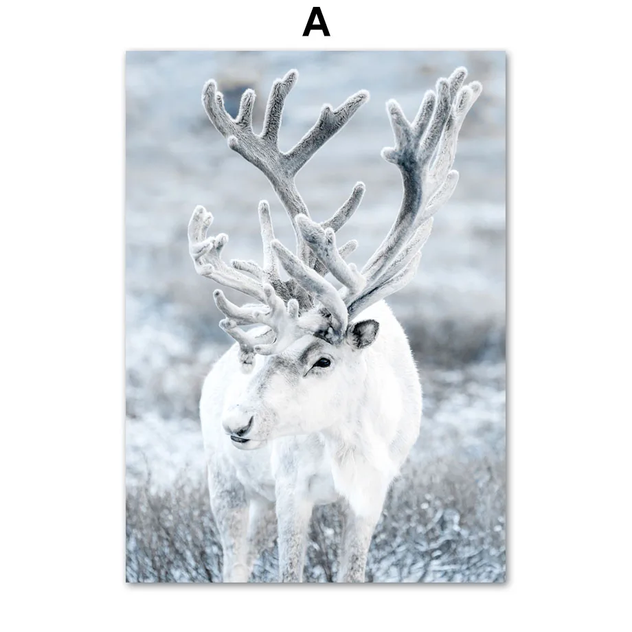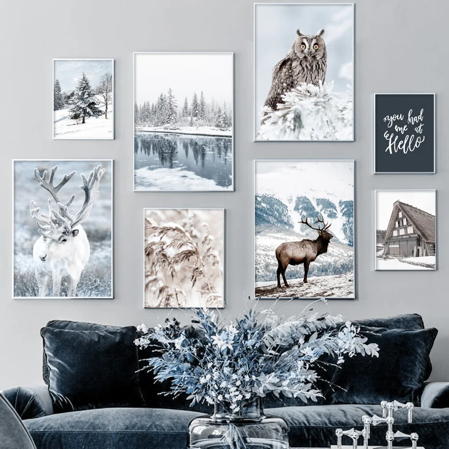 Зимняя снежная Картина на холсте гор олень сова лес река настенные художественные плакаты принты картины для гостиной Рождество декор комнаты