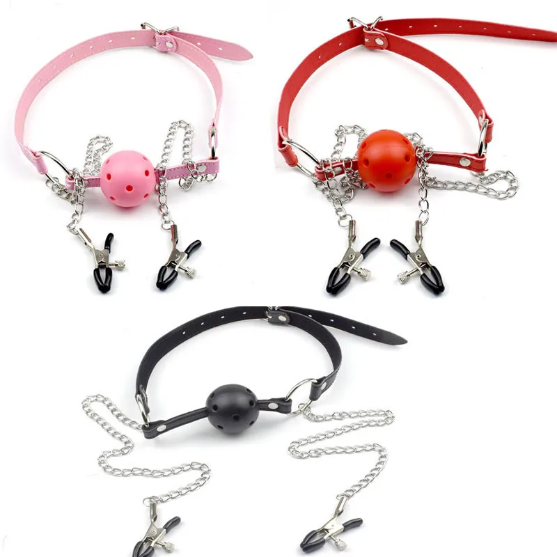 Сексуальные женские дышащие шаровые Кляпы, открытые Кляпы для рта, соски, грудные зажимы, БДСМ, бондаж, эротические секс-игрушки для пар, игры для взрослых