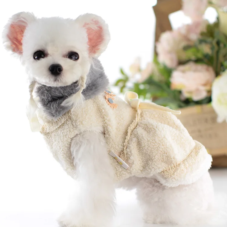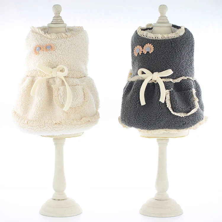 Осенне-зимние бежево-серые цвета Размеры Xs-xl теплые платья для собак йоркширского терьера с маленьким цветочным декором сарафан Одежда для домашних животных