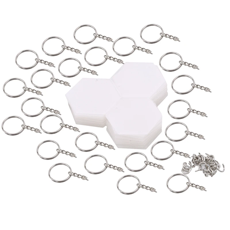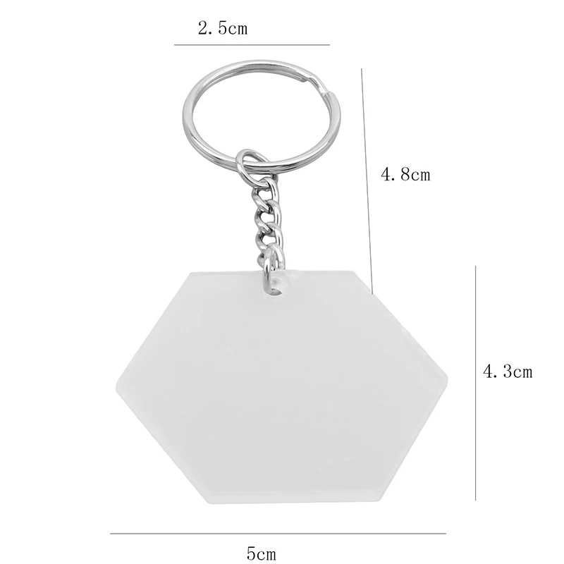 Прозрачный акриловый диск и цепочка для ключей, прозрачная акриловая заготовка для самодельных предметов и поделок (Шестигранник, 48 шт.)