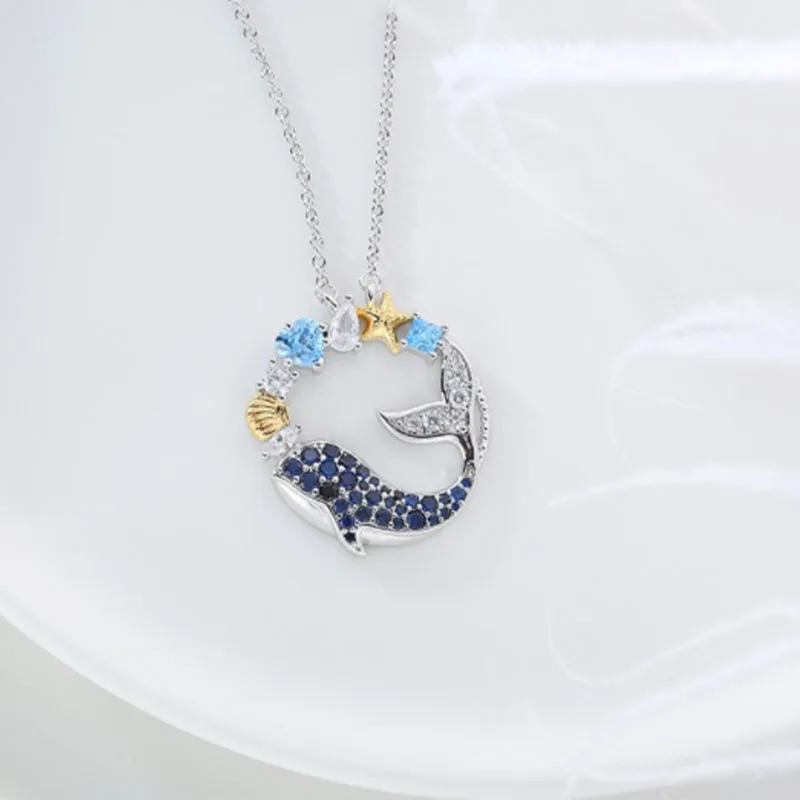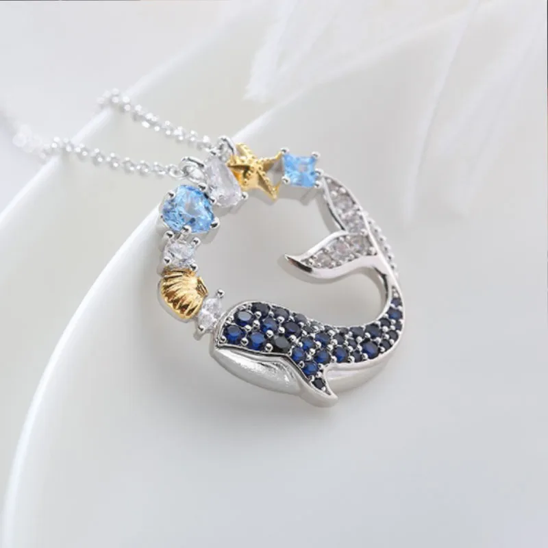 Изысканный дельфин кристалл кулон ожерелье шикарный Дельфин свадебн...