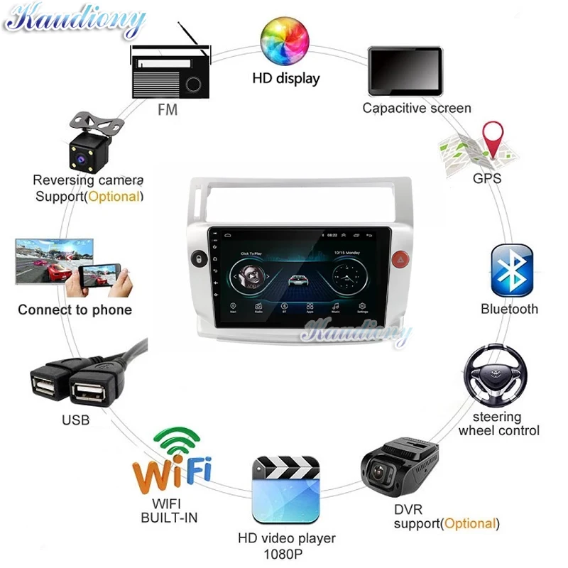 Подходит для Citroen C4 C-Triomphe C-Quatre 2004 2005 2006 2007 2008 2009Встроенная функция Wi-Fi (подключение к горячей точке с вашего смартфона для Интернета)
