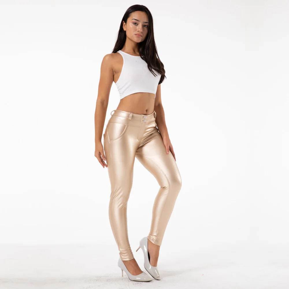 Женские леггинсы из искусственной кожи Shascullfites, однотонные обтягивающие облегающие брюки до щиколотки, облегающие штаны для фитнеса, золотистые Вечерние брюки из искусственной кожи