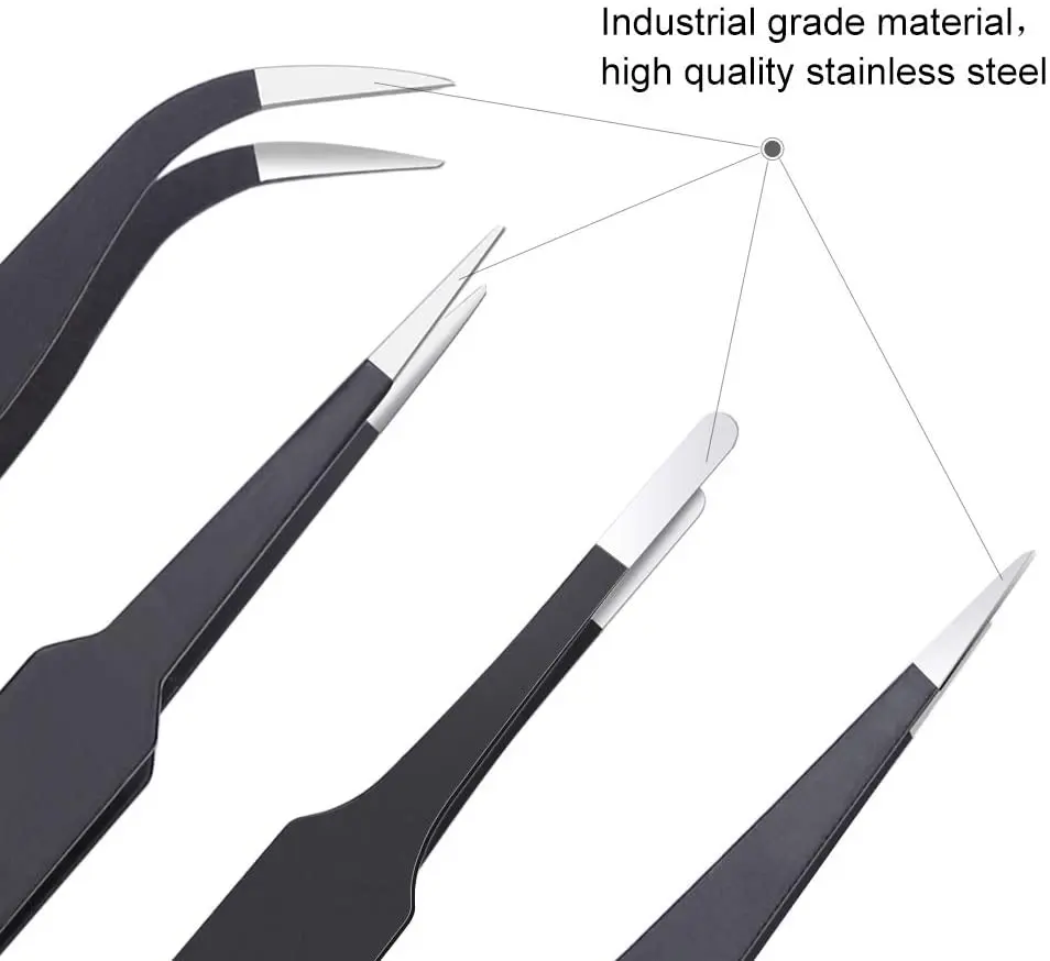 Набор высокоточных пинцетов из 6 предметов, усовершенствованные антистатические изогнутые пинцеты из нержавеющей стали для электроники, лабораторных работ, ювелирных изделий