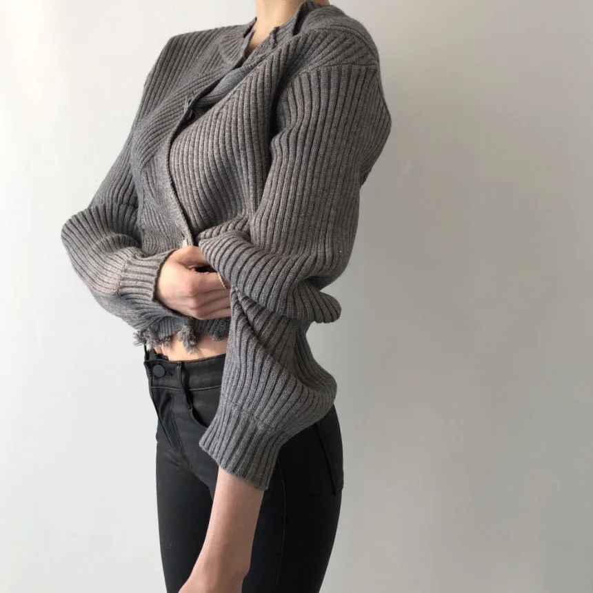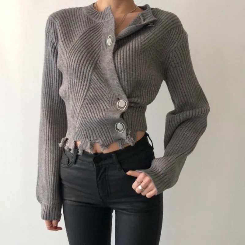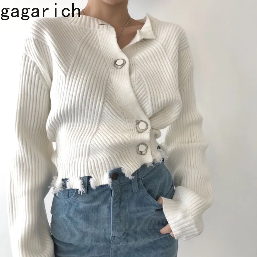 Gagarich Женский Осенний вязаный кардиган 2022 новая корейская мода в Instagram с круглым вырезом шикарный дизайн на пуговицах потертые края однотонный короткий свитер