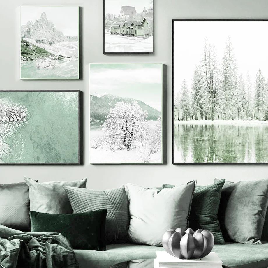 Зимняя Снежная гора кедровый лес озеро настенная живопись на холсте скандинавские плакаты и принты картины декор для гостиной на Рождество