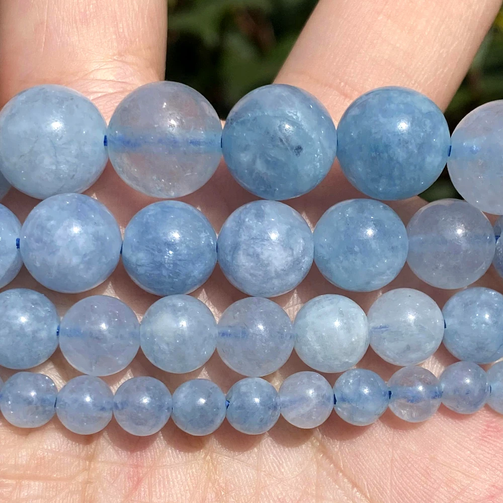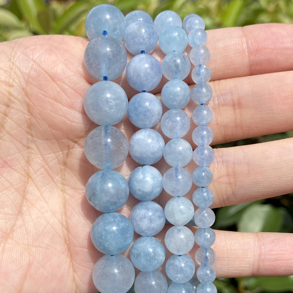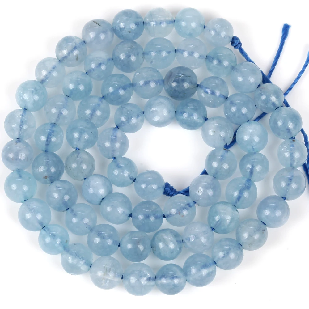 6/8/10/12 мм синий натуральные нефриты халцедон аквамаринами Круглый Камень Бисер для изготовления ювелирных изделий Diy браслет ожерелье аксессуары