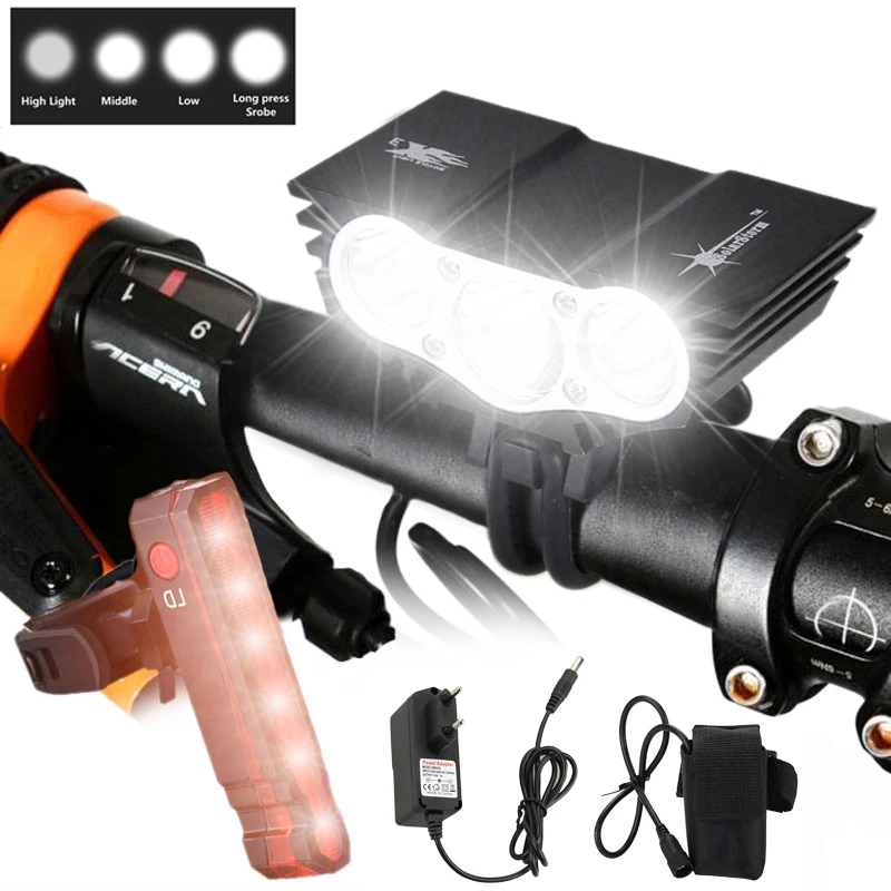 Фонарь для горного велосипеда 3xT светодиодный, 4 режима, аккумулятор 6400 мАч