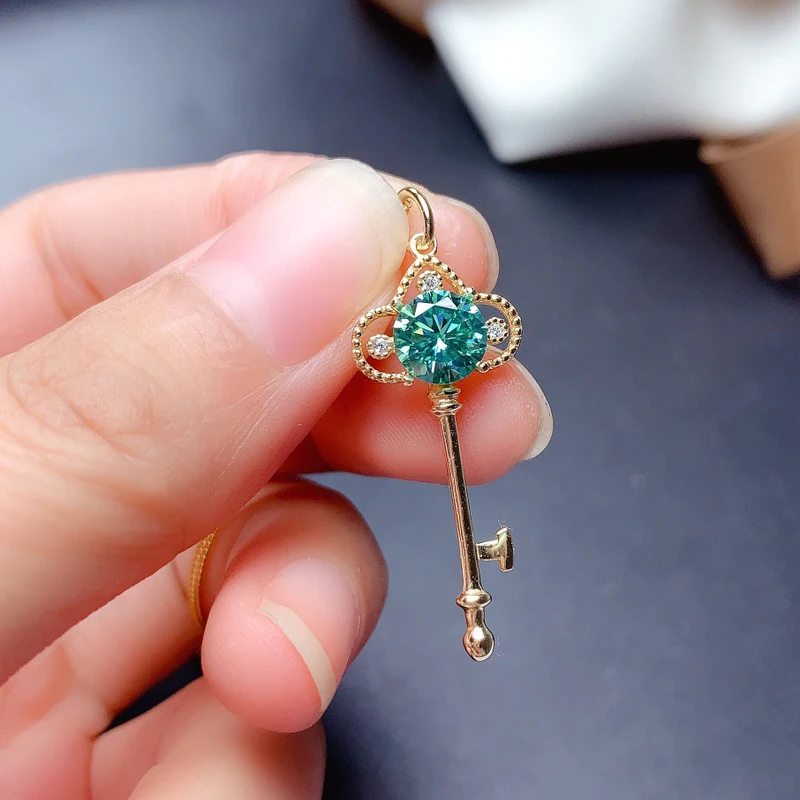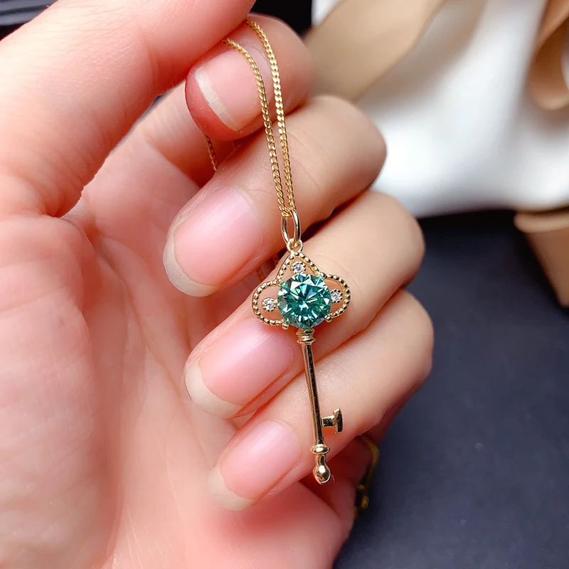 Ожерелье Luomansi с ключом из зеленого муассанита, 1 карат, 6,5 мм