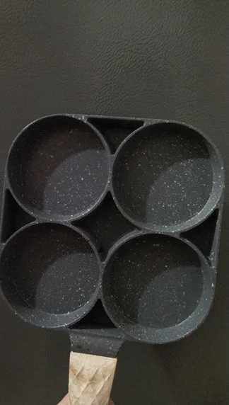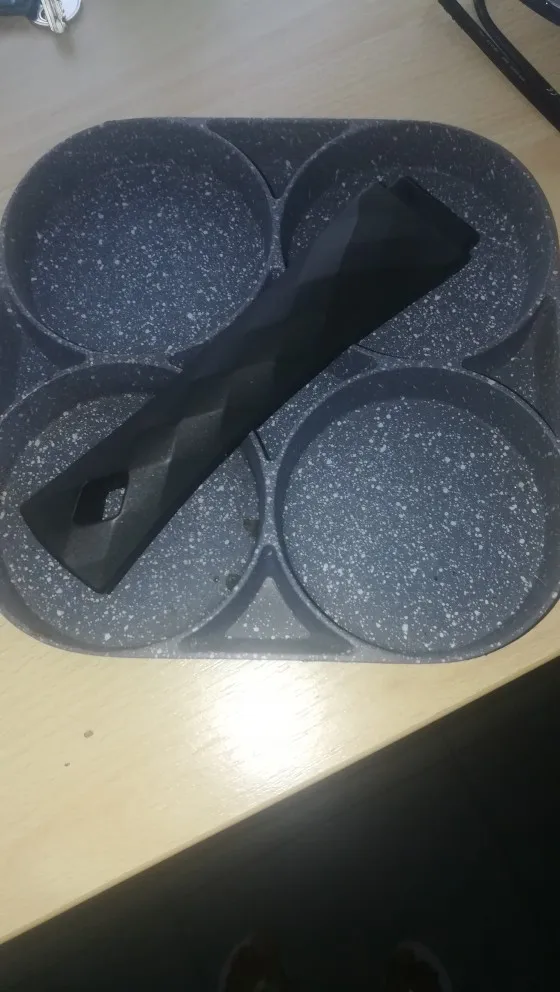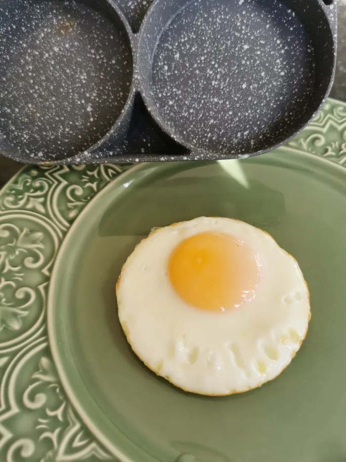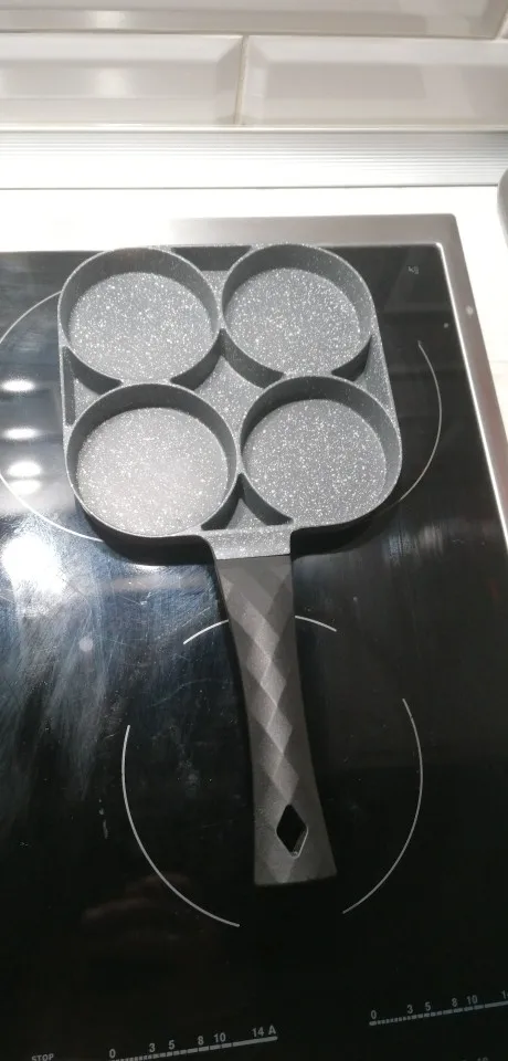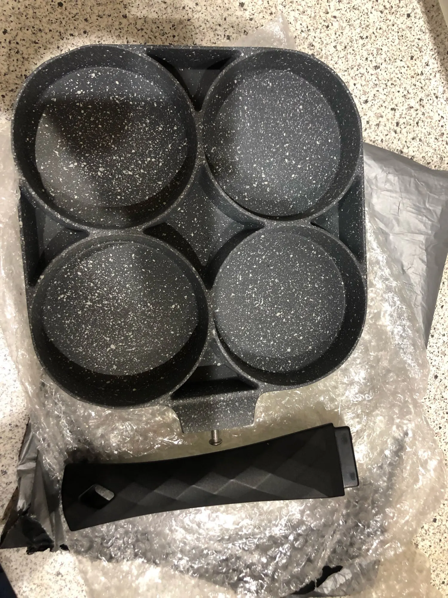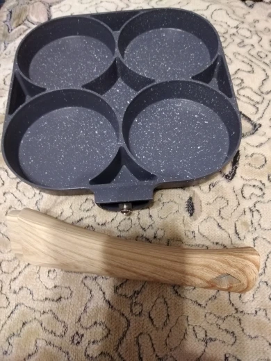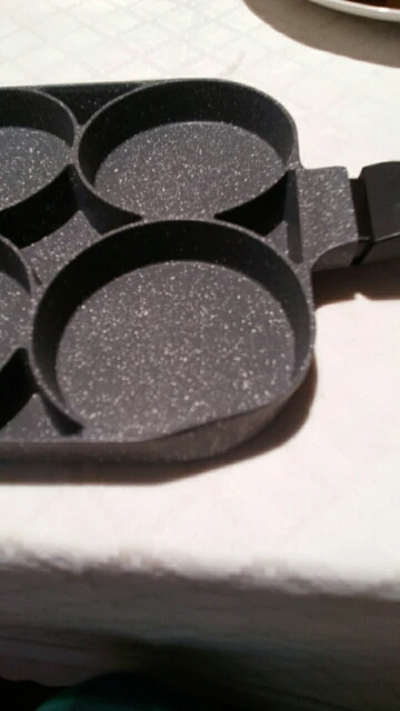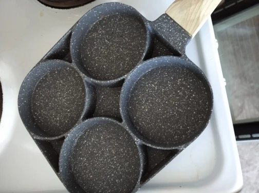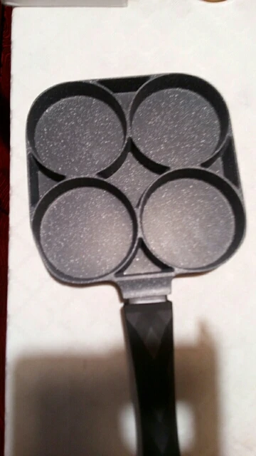 Мне нравится размер, потому что он не слишком большой. Сковорода имеет хороший вес (не слишком легкий), легко моется и варит идеальные яйца. Я приготовил яйца в двух отсеках и канадский бекон в двух других. Как написали другие, вы захотите почистить немного масла (я использовал оливковое масло) в нижней части и по бокам каждого круга. Это позволяет легко поворачивать яйца и очищать их. Я порезал готовку и готовлю пополам. Я бы хотел купить эту кастрюлю раньше.