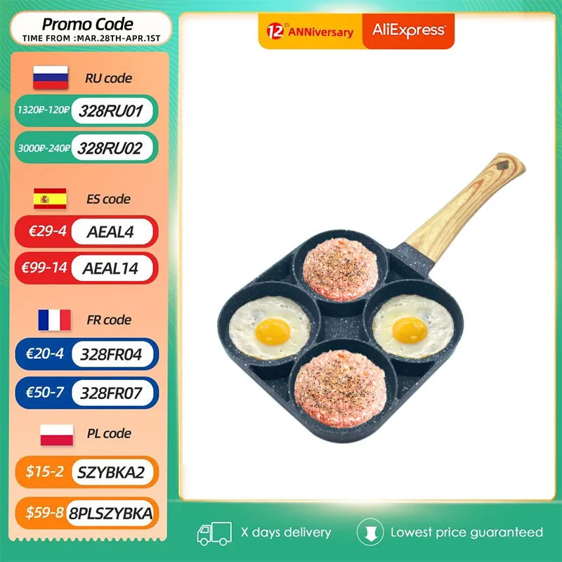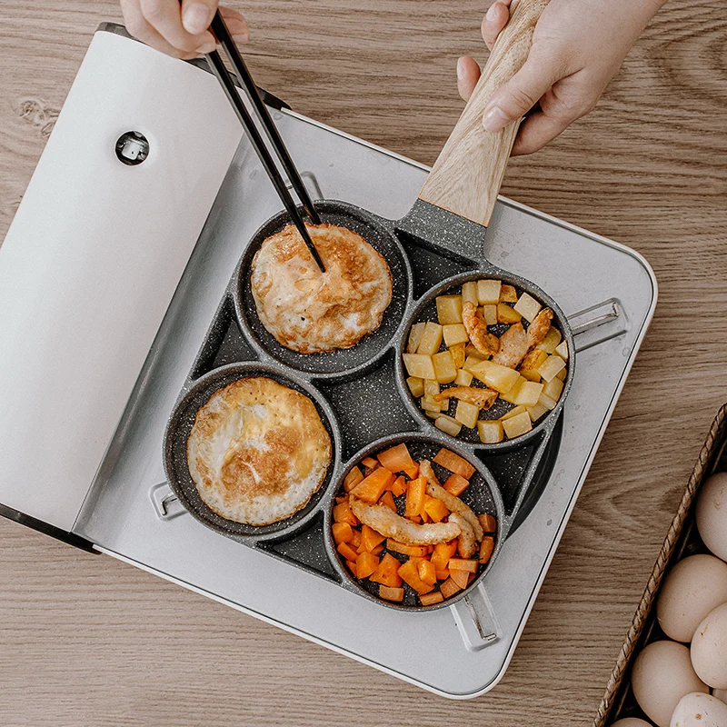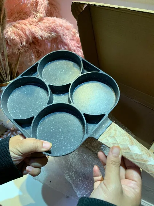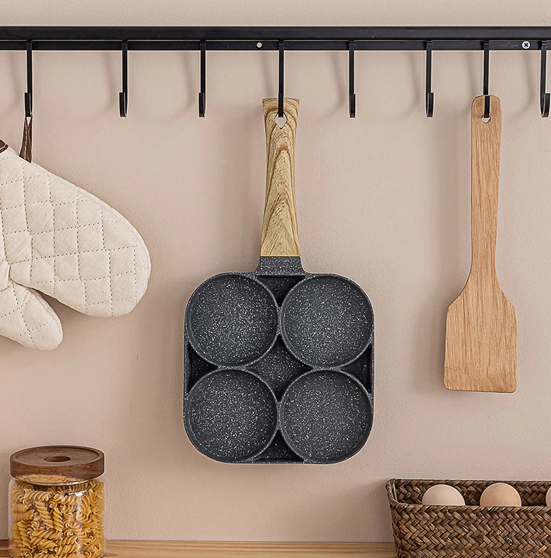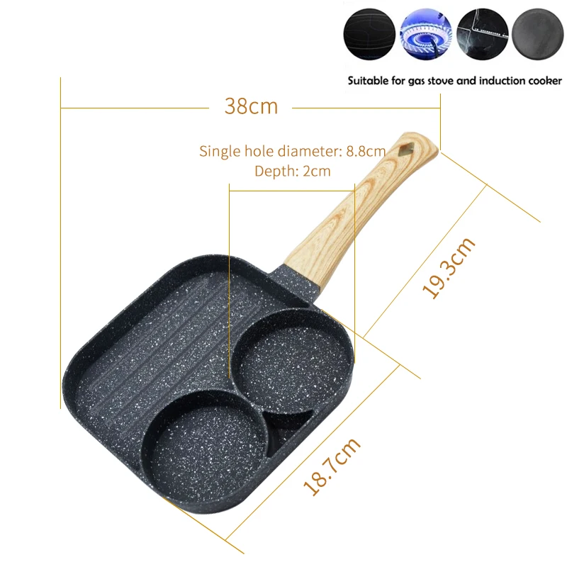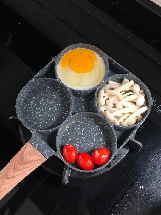 Сковорода с 24 отверстиями, утолщенная, искусственная, черная, антипригарная, для яиц, стейков, ветчины, блинов, деревянной ручкой, кухонная утварь для приготовления завтрака