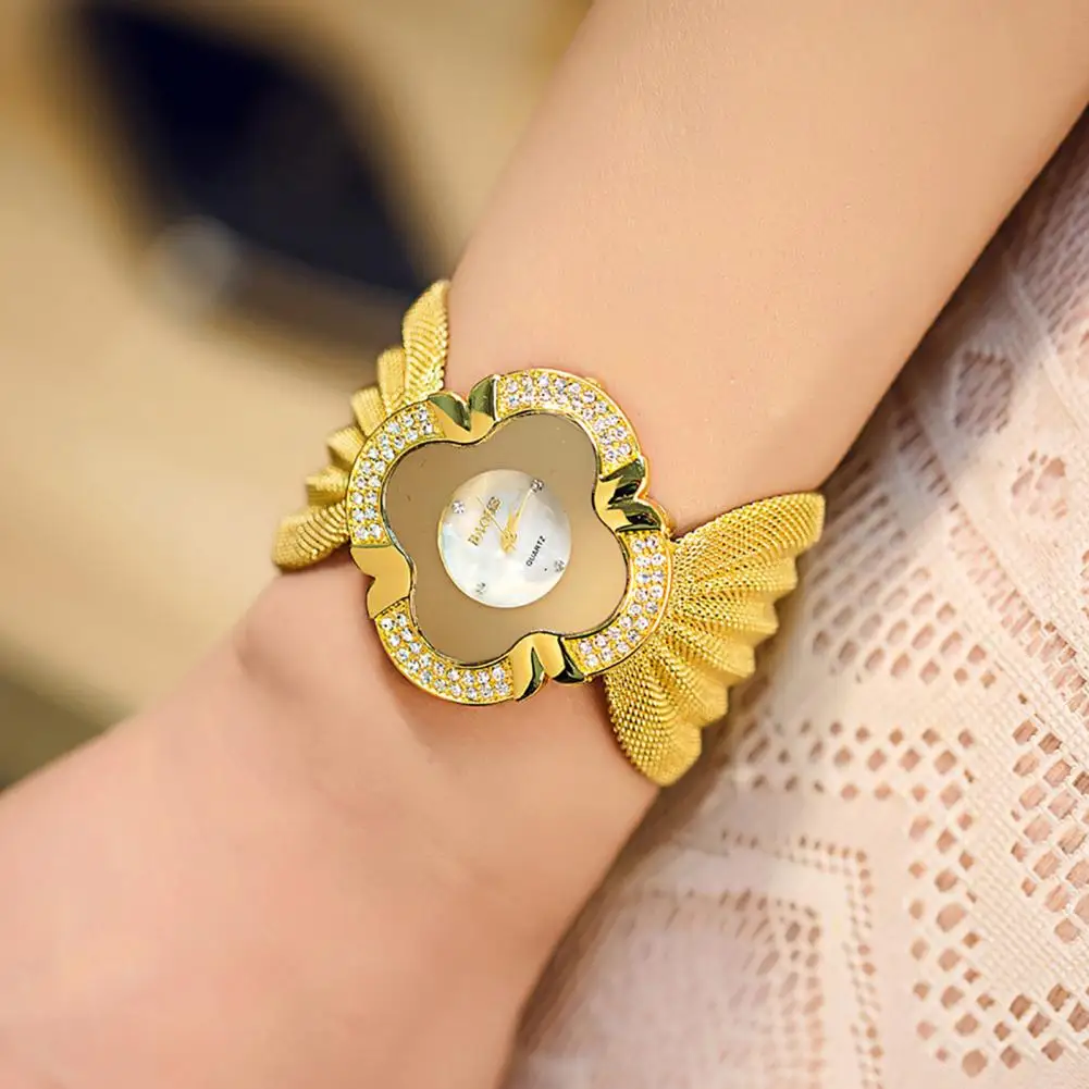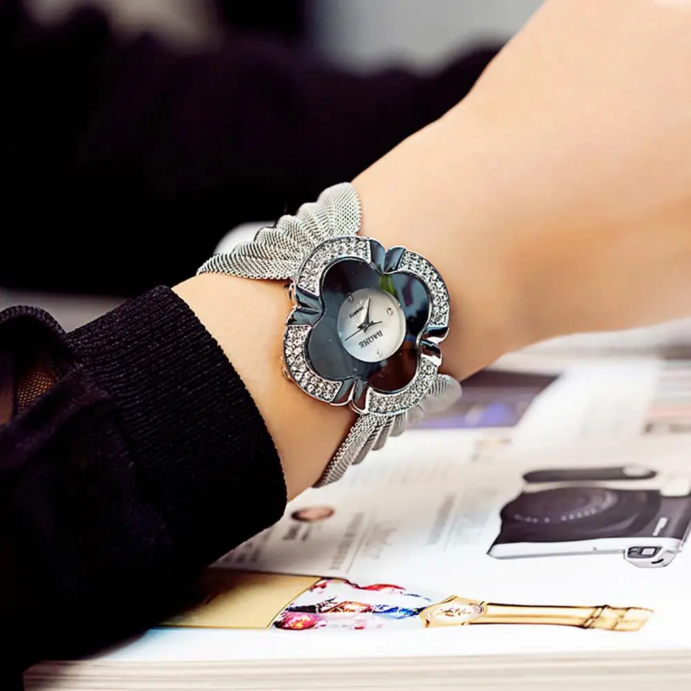 Женские кварцевые наручные часы с сетчатым ремешком и бабочкой