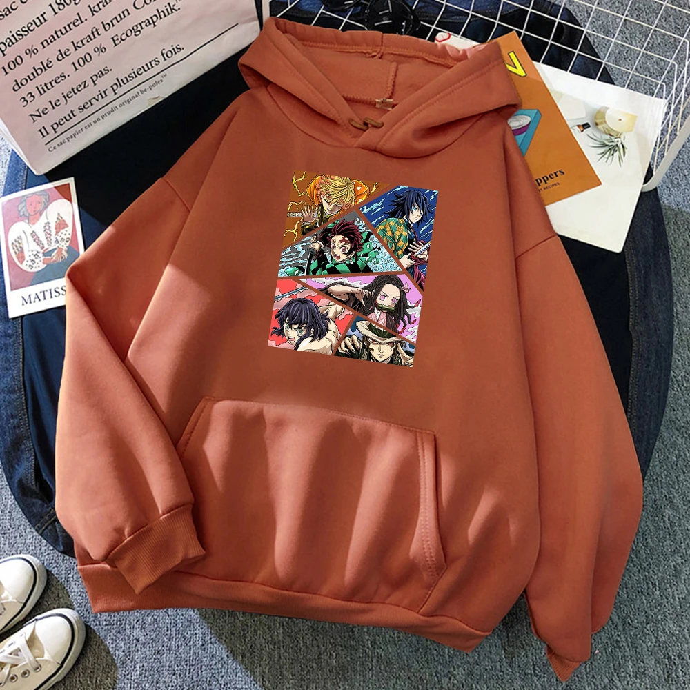Япония Demon Slayer аниме персонаж мужская одежда милый пуловер с круглым вырезом толстовка с капюшоном для фитнеса уличная свободная флисовая одежда для мужчин