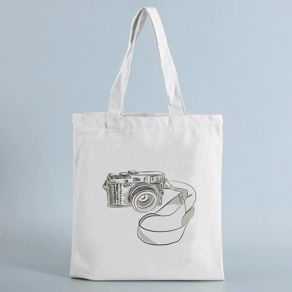 Винтажная многоразовая сумка для покупок с принтом камеры, модный дорожный тоут на плечо, складная эстетичная Сумочка для книг в стиле Харадзюку