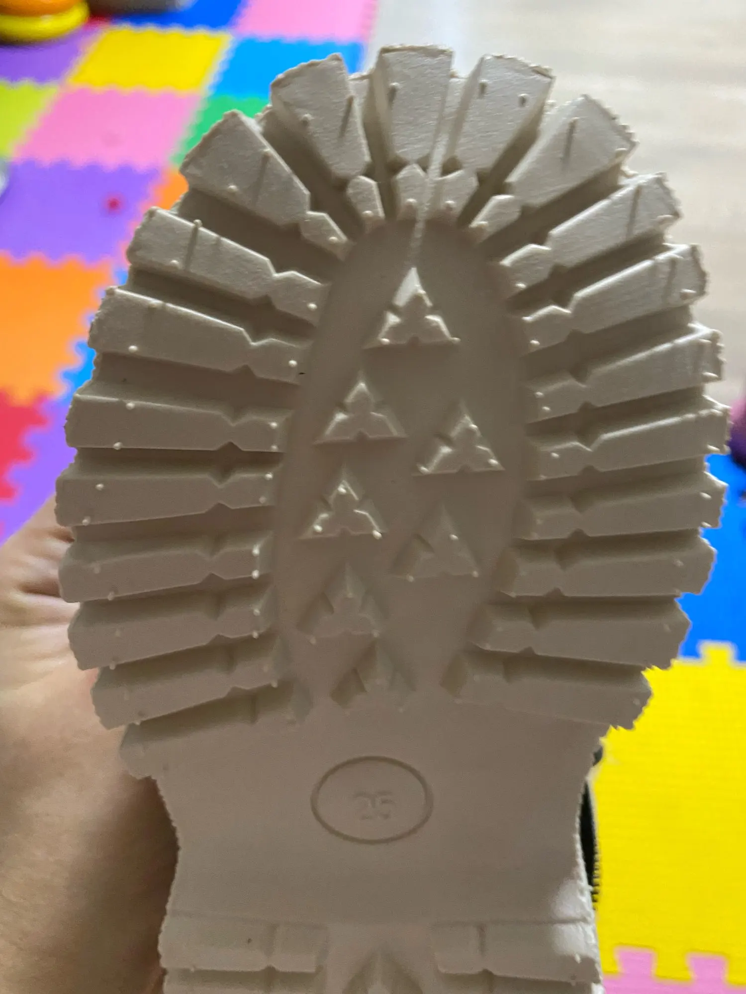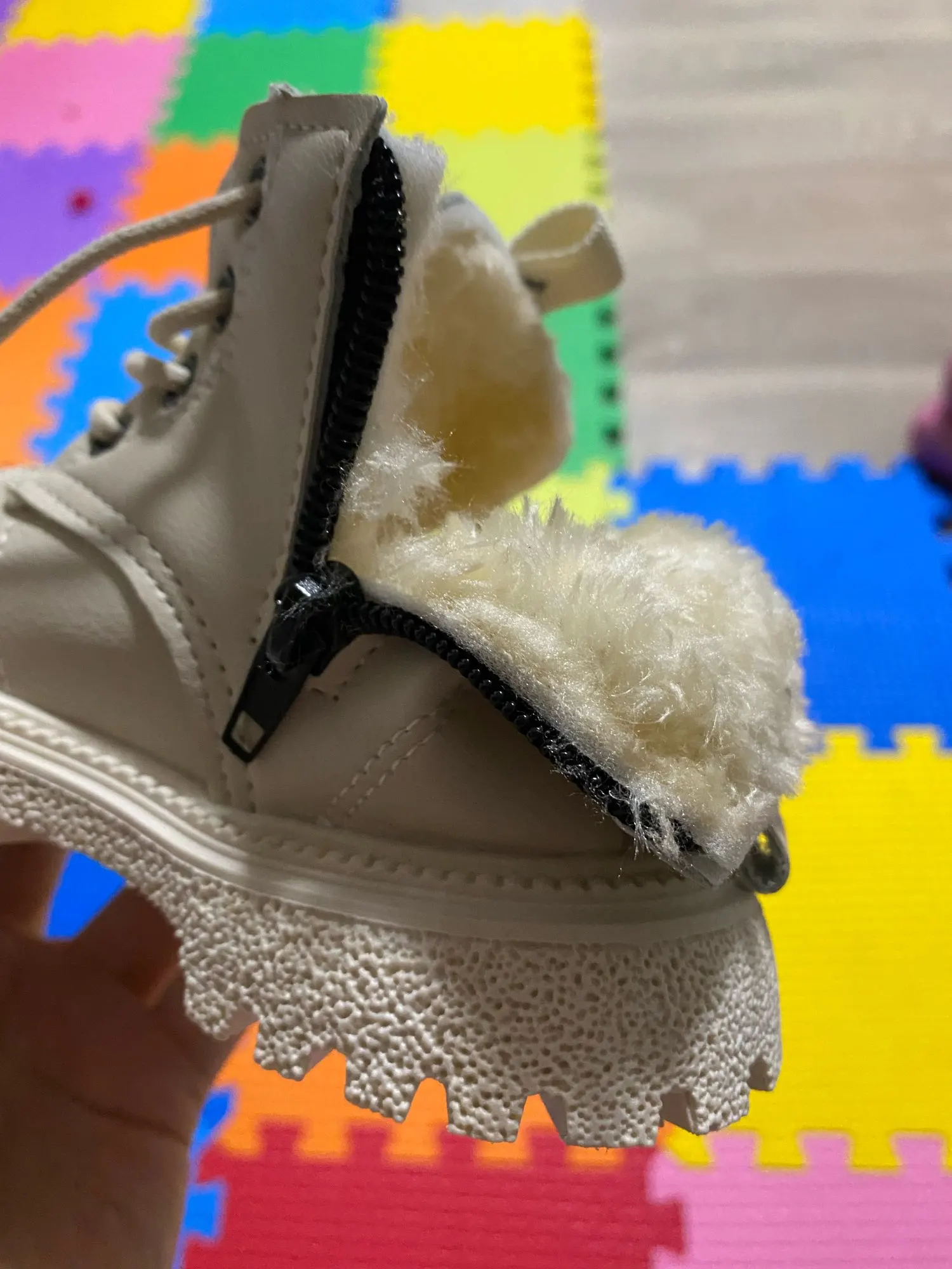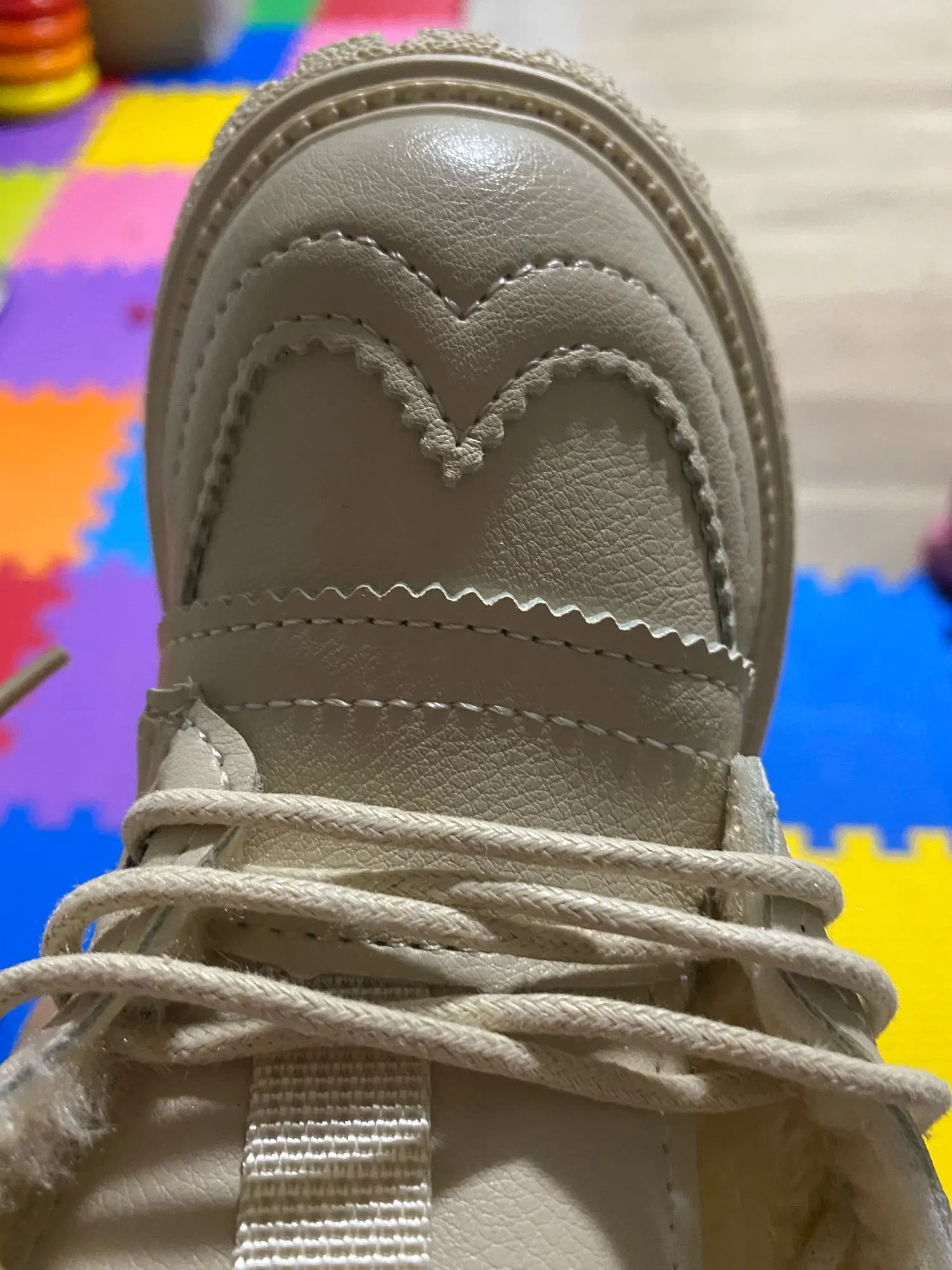 Сами ботинки очень хорошие, сделаны аккуратно, приятные на ощупь, ничего не торчит нигде. Цвет благородный молочный, качественная молния, они очень легкие. Но! Для детей совершенно не подходят потому что задник абсолютно гибкий, никакого каркаса нет совершенно. Очень жаль(((