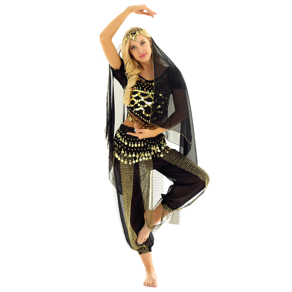 Новый женский костюм для танца живота для взрослых, юбка для танца живота в восточном стиле, для выступлений на сцене, 4 шт./компл., индийское платье для танца живота, юбка для танца живота